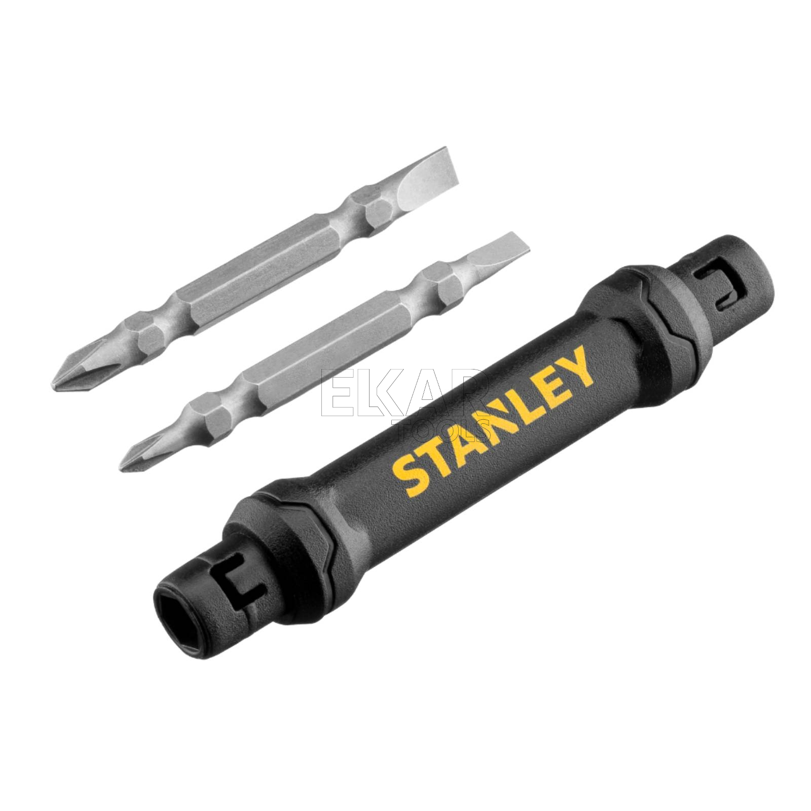 Śrubokręt kieszonkowy z bitami 4w1 STANLEY 66-344M to kompaktowe i niezwykle praktyczne narzędzie ręczne stworzone do szybkich prac montażowych, serwisowych i drobnych napraw wykonywanych w domu, warsztacie oraz w terenie. Konstrukcja 4w1 łączy w jednym narzędziu kilka najczęściej używanych końcówek, co pozwala wygodnie wykonywać podstawowe prace bez konieczności sięgania po większy zestaw narzędzi.