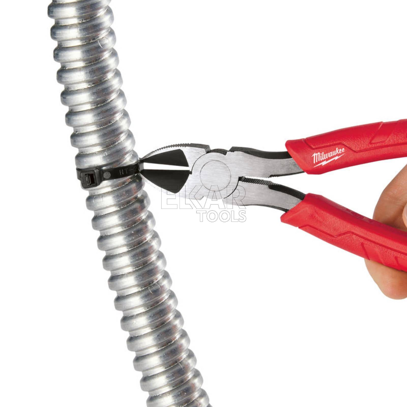 Szczypce do cięcia bocznego 180 mm Milwaukee 48226107 to wytrzymałe i precyzyjne narzędzie stworzone z myślą o profesjonalnych użytkownikach pracujących w wymagających warunkach. Dzięki ostrym, hartowanym szczękom wykonanym ze stali wysokiej jakości, szczypce zapewniają czyste i szybkie cięcie twardych przewodów, drutów oraz kabli. Długość 180 mm gwarantuje optymalną siłę nacisku przy zachowaniu kompaktowych wymiarów, co ułatwia pracę w ograniczonej przestrzeni.