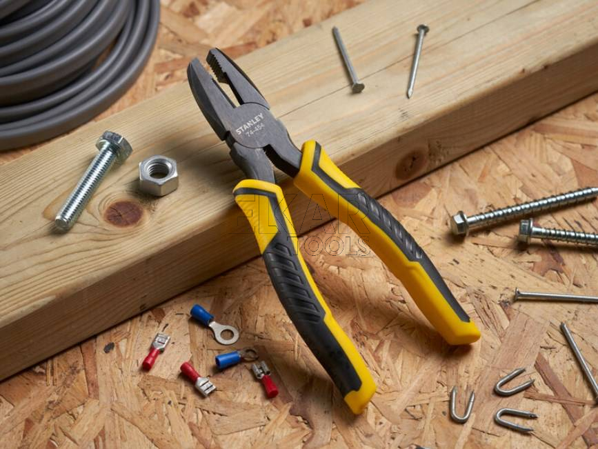 Szczypce kombinerki uniwersalne 180 mm STANLEY STHT0-74454 to wszechstronne narzędzie ręczne, idealne do codziennych prac montażowych, serwisowych i warsztatowych. Dzięki solidnej konstrukcji ze stali węglowej szczypce zapewniają wysoką trwałość, odporność na zużycie oraz precyzyjne działanie nawet przy intensywnym użytkowaniu. Ich funkcjonalność obejmuje cięcie, chwytanie, przytrzymywanie i zginanie przewodów, drutów oraz innych elementów montażowych. Ergonomiczne, dwukomponentowe uchwyty gwarantują pewny i wygodny chwyt, zwiększając komfort pracy i kontrolę nad narzędziem. Kompaktowa długość 180 mm sprawia, że kombinerki STANLEY STHT0-74454 są wyjątkowo poręczne i praktyczne w użyciu, zarówno dla profesjonalistów, jak i majsterkowiczów poszukujących niezawodnego narzędzia do uniwersalnych zastosowań.
