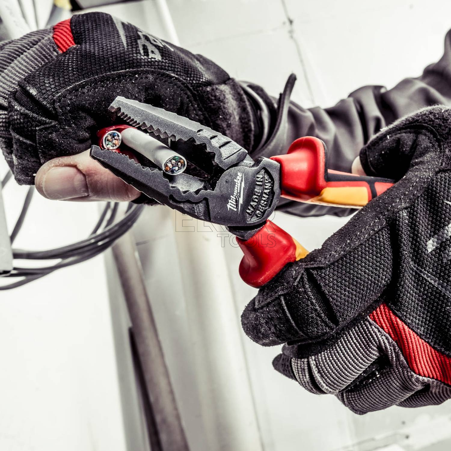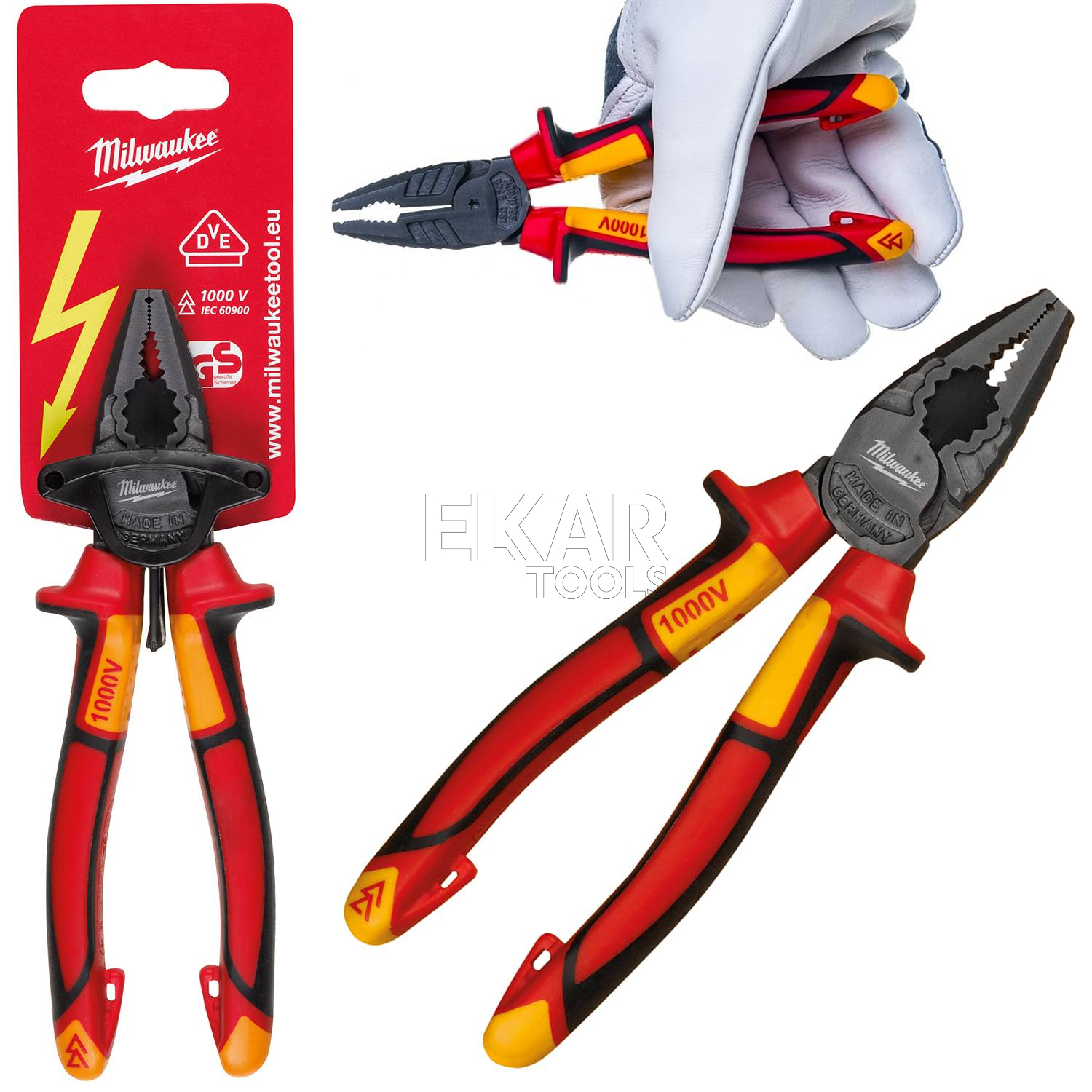 Szczypce uniwersalne VDE 180 mm Milwaukee 4932464572 to niezawodne narzędzie przeznaczone do bezpiecznej pracy przy instalacjach elektrycznych pod napięciem do 1000 V. Dzięki hartowanym szczękom wykonanym z wysokiej jakości stali szczypce doskonale sprawdzają się przy cięciu, chwytaniu i formowaniu przewodów oraz innych elementów instalacyjnych. Kompaktowa długość 180 mm zapewnia precyzję działania i wygodę użytkowania, nawet w ograniczonej przestrzeni roboczej. Rękojeści pokryte podwójną izolacją VDE gwarantują wysoki poziom bezpieczeństwa oraz komfort pracy, spełniając normę EN 60900.
