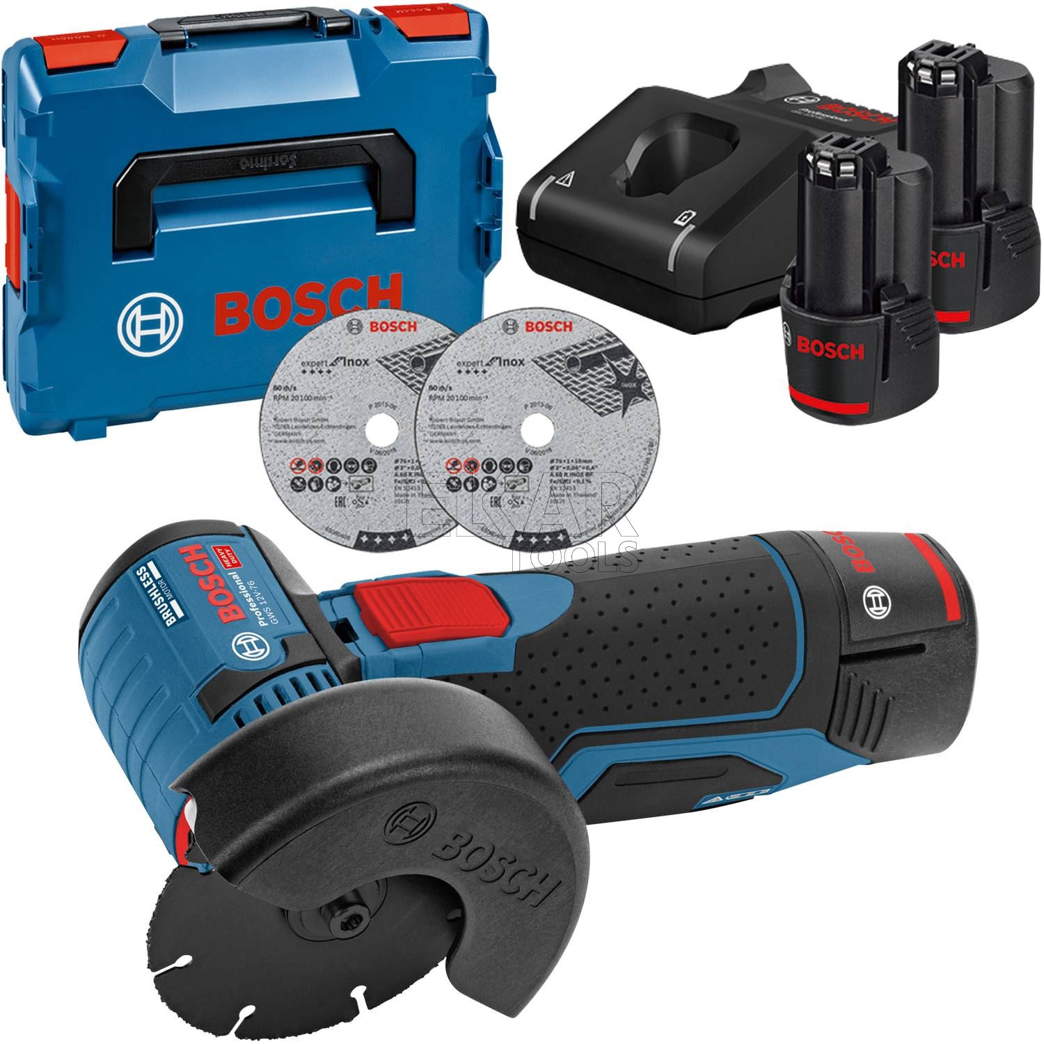 Szlifierka kątowa akumulatorowa BOSCH GWS 12V-76 06019F200B 12V 76mm + 2x3Ah + tarcze + L-BOXX