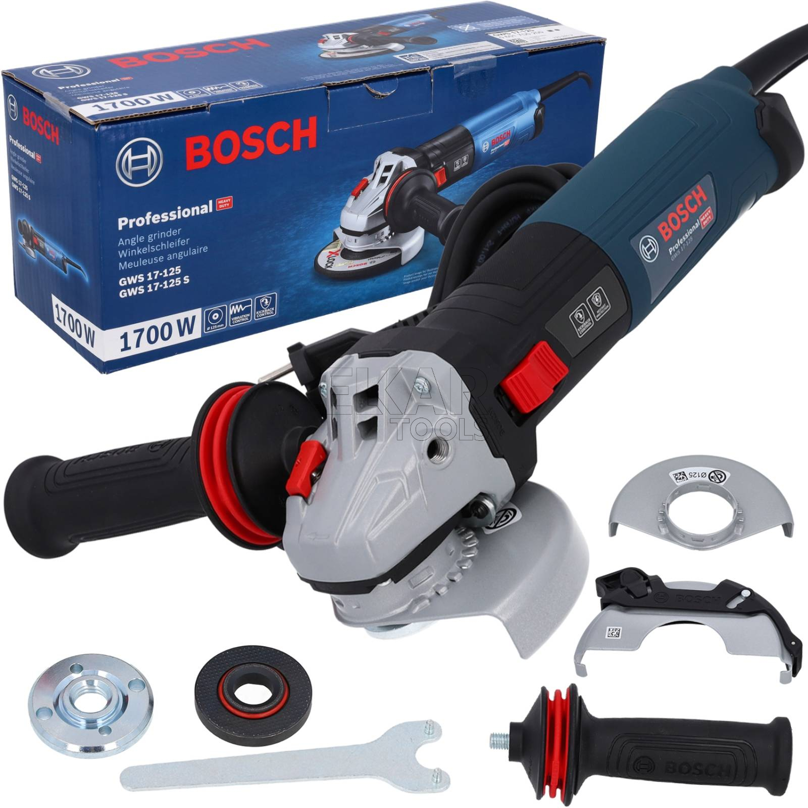 Model szlifierka kątowa Bosch GWS 17 125 został wyposażony w wydajny silnik o mocy 1700 W, który gwarantuje niezawodną i płynną pracę. Dzięki wyraźnie mniejszemu obwodowi rękojeści narzędzie zapewnia większy komfort użytkowania, co ma ogromne znaczenie podczas długotrwałych zadań.