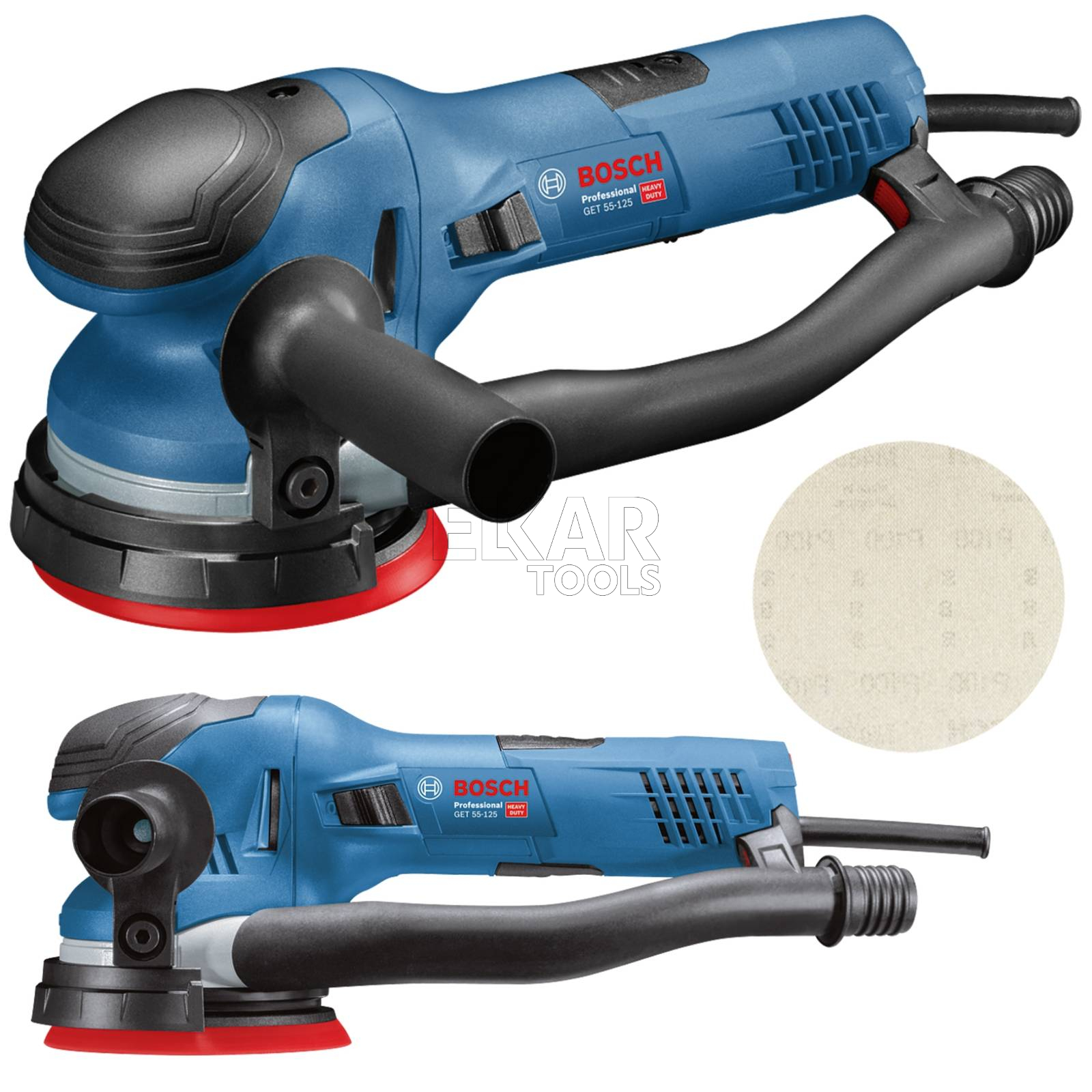 Model GET 55-125 Professional to szlifierka mimośrodowa Bosch 125 mm, z bezpośrednim napędem, zapewniająca wyjątkowo kontrolę i łatwą obsługę. Komfortowa konstrukcja z ergonomicznym przednim punktem podparcia dłoni oraz wąski obwód rękojeści pozwalają optymalnie kontrolować narzędzie podczas pracy. Wielootworowy talerz szlifierski umożliwia wygodne korzystanie ze wszystkich papierów ściernych niezależnie od liczby otworów. Narzędzie jest także wyposażone w silnik o mocy 550 W oraz system aktywnej rotacji talerza, który zapewnia bardzo wysoką wydajność ścierną.