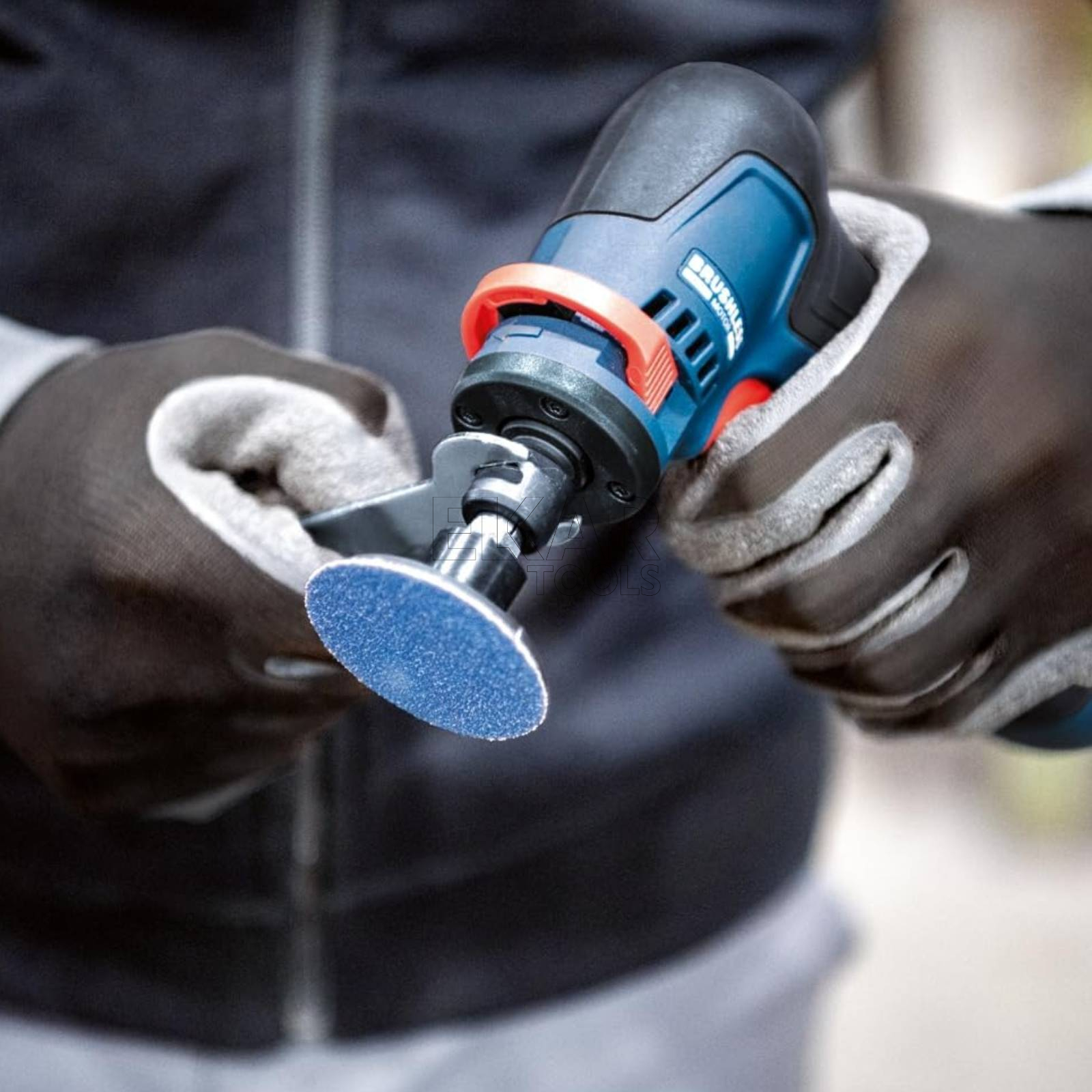 GWG 12V-50 S 06013A7000 to wszechstronne elektronarzędzie do szlifowania za pomocą tarcz, gratowania, szlifowania za pomocą papieru ściernego, czyszczenia oraz przygotowania powierzchni, a także do obróbki szwów i punktów spawalniczych, zwłaszcza na powierzchniach metalowych. Model jest kompatybilny z wieloma tarczami ściernymi 50 mm dostępnymi na rynku oraz z zaciskami mocującymi 6 mm oraz 8 mm. Posiada także innowacyjny interfejs użytkownika ze wskazaniami prędkości obrotowej oraz stanu naładowania akumulatora.