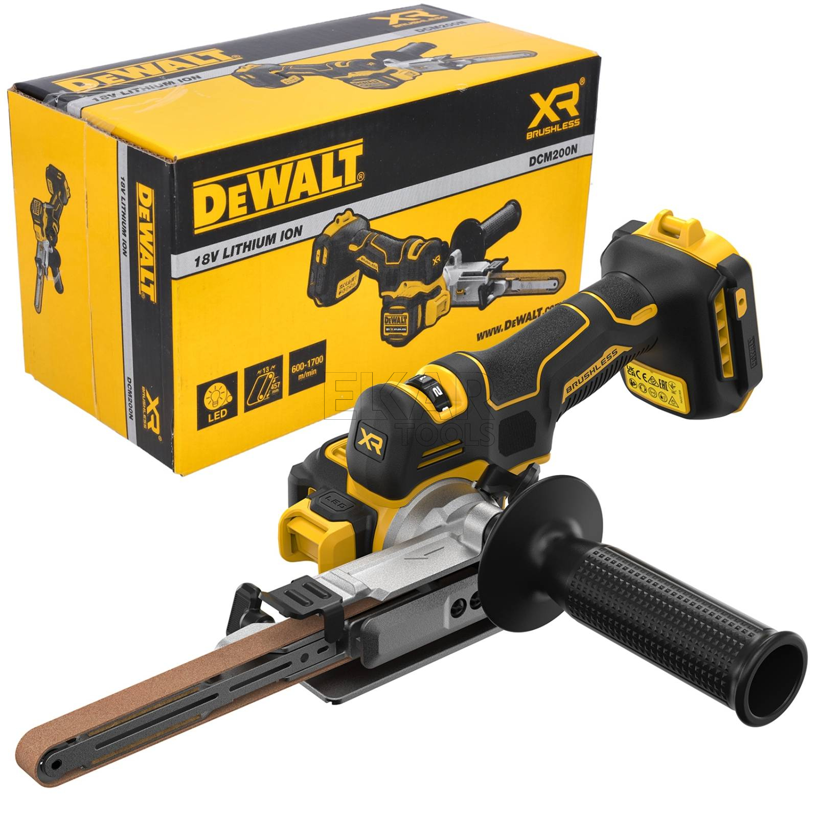 Szlifierka taśmowa akumulatorowy pilnik DeWalt DCM200N to nowoczesne i wydajne narzędzie przeznaczone do precyzyjnego szlifowania trudno dostępnych miejsc, krawędzi oraz spawów. Dzięki zasilaniu akumulatorowemu 18V z serii XR Li-Ion DeWalt, urządzenie zapewnia pełną mobilność i wygodę pracy bez ograniczeń związanych z przewodami. Kompaktowa konstrukcja i wąska taśma szlifierska sprawiają, że DCM200N idealnie nadaje się do zastosowań w warsztatach metalowych, stolarskich oraz podczas prac serwisowych i montażowych.