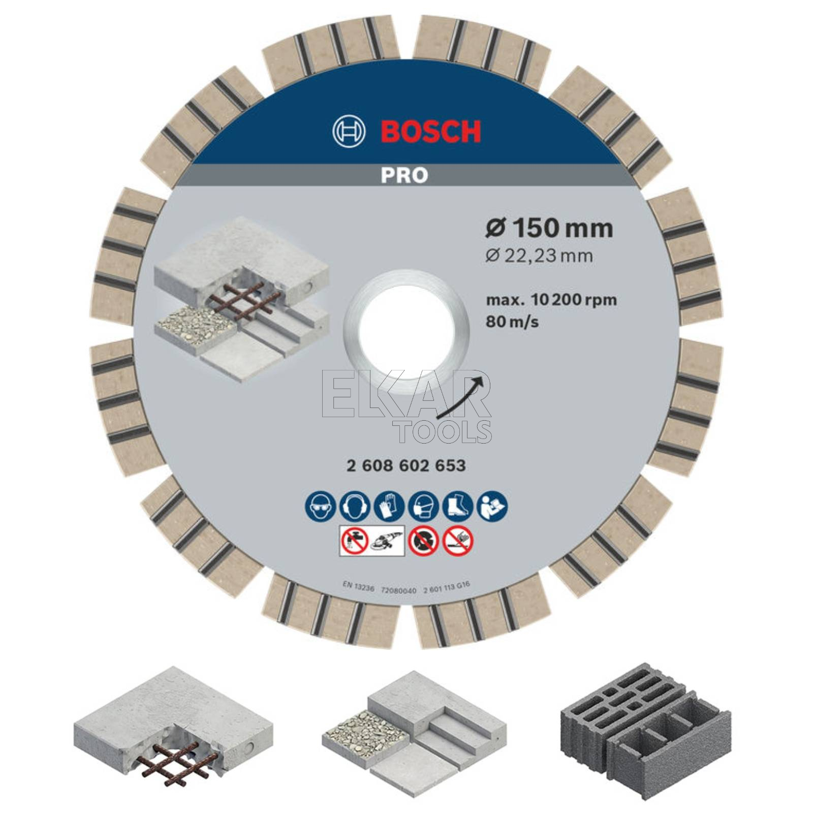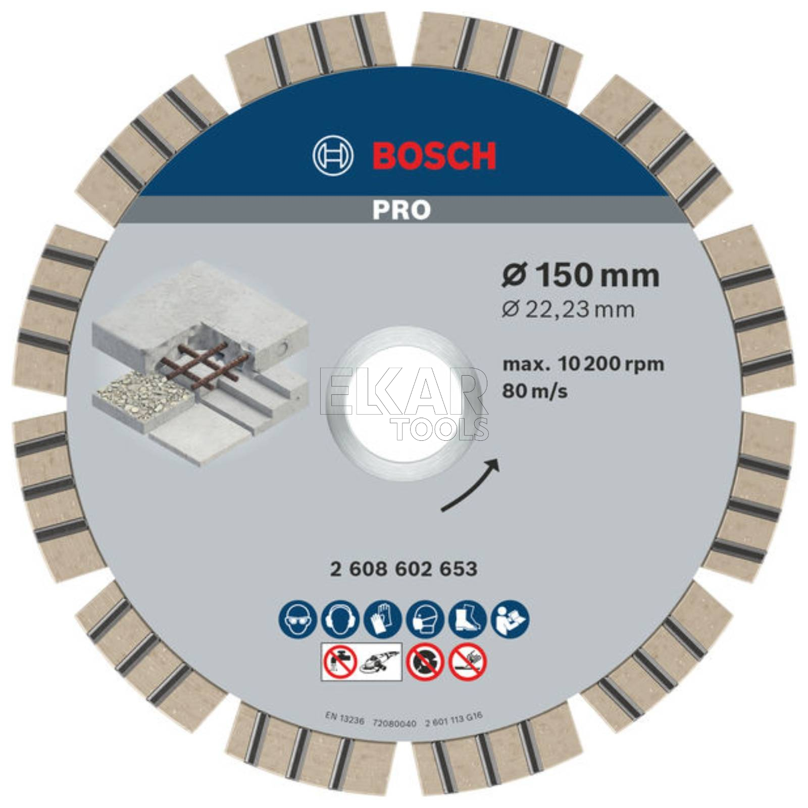 - Rodzaj tarczy: tarcza diamentowa do betonu PRO Concrete Diamond Disc, 150 x 22,23 mm