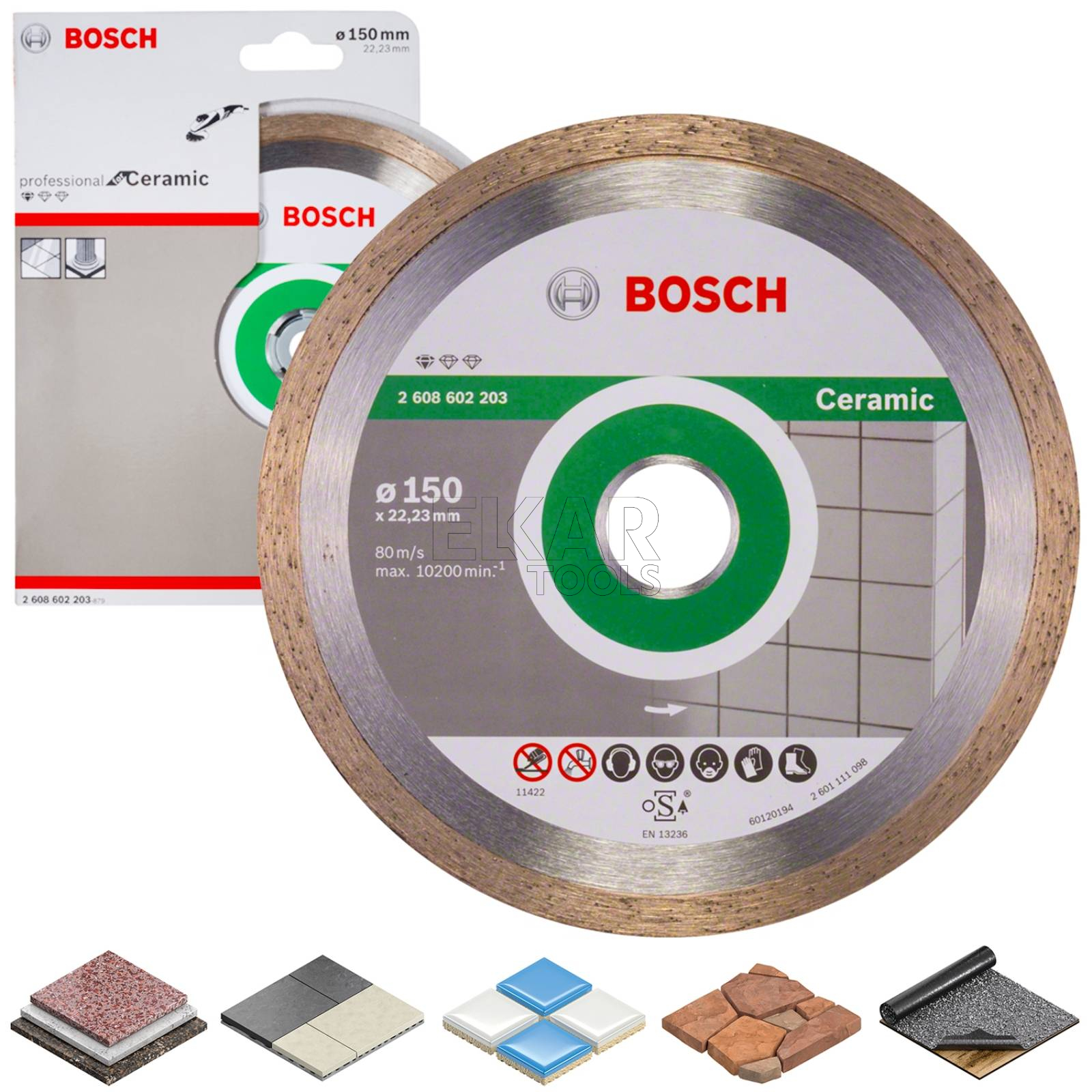 Tarcza diamentowa do płytek 150 mm BOSCH 2608602203 z serii Standard for Ceramic to niezawodne narzędzie do precyzyjnego cięcia płytek ceramicznych, gresu, glazury oraz innych materiałów wykończeniowych o wysokiej twardości. Dzięki ciągłemu segmentowi diamentowemu tarcza zapewnia wyjątkowo gładkie i czyste krawędzie bez wyszczerbień, co jest kluczowe przy pracach glazurniczych i montażu elementów dekoracyjnych. Średnica 150 mm pozwala na wygodne operowanie tarczą nawet w trudno dostępnych miejscach, zachowując pełną kontrolę i wysoką dokładność cięcia. Model BOSCH 2608602203 jest kompatybilny z przecinarkami stołowymi i ręcznymi, co czyni go praktycznym rozwiązaniem zarówno dla profesjonalistów, jak i domowych majsterkowiczów. To doskonały wybór dla wszystkich, którzy poszukują trwałej i precyzyjnej tarczy diamentowej do ceramiki.