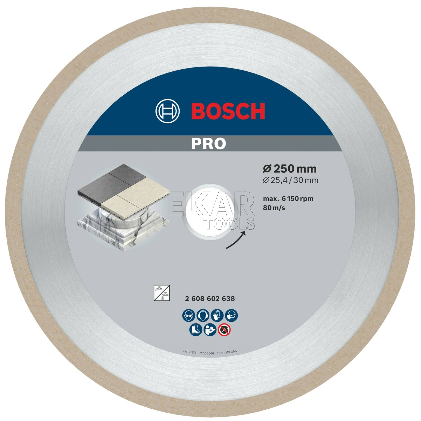 - Rodzaj tarczy: tarcza diamentowa do ceramiki PRO Ceramic Diamond Disc, 250 x 30/25,4 mm