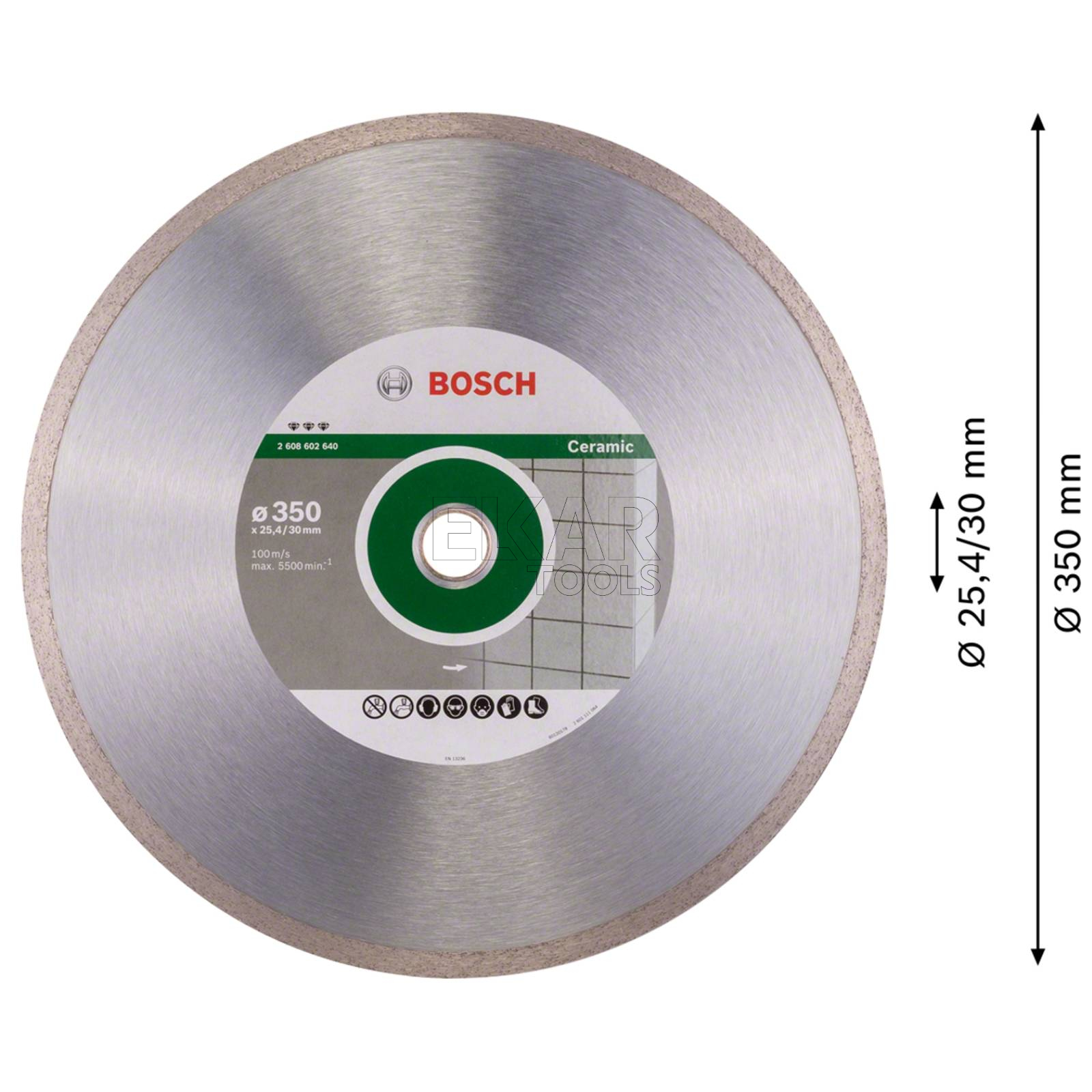 - Rodzaj tarczy: tarcza diamentowa do ceramiki PRO Ceramic Diamond Disc, 350 x 30/25,4 mm