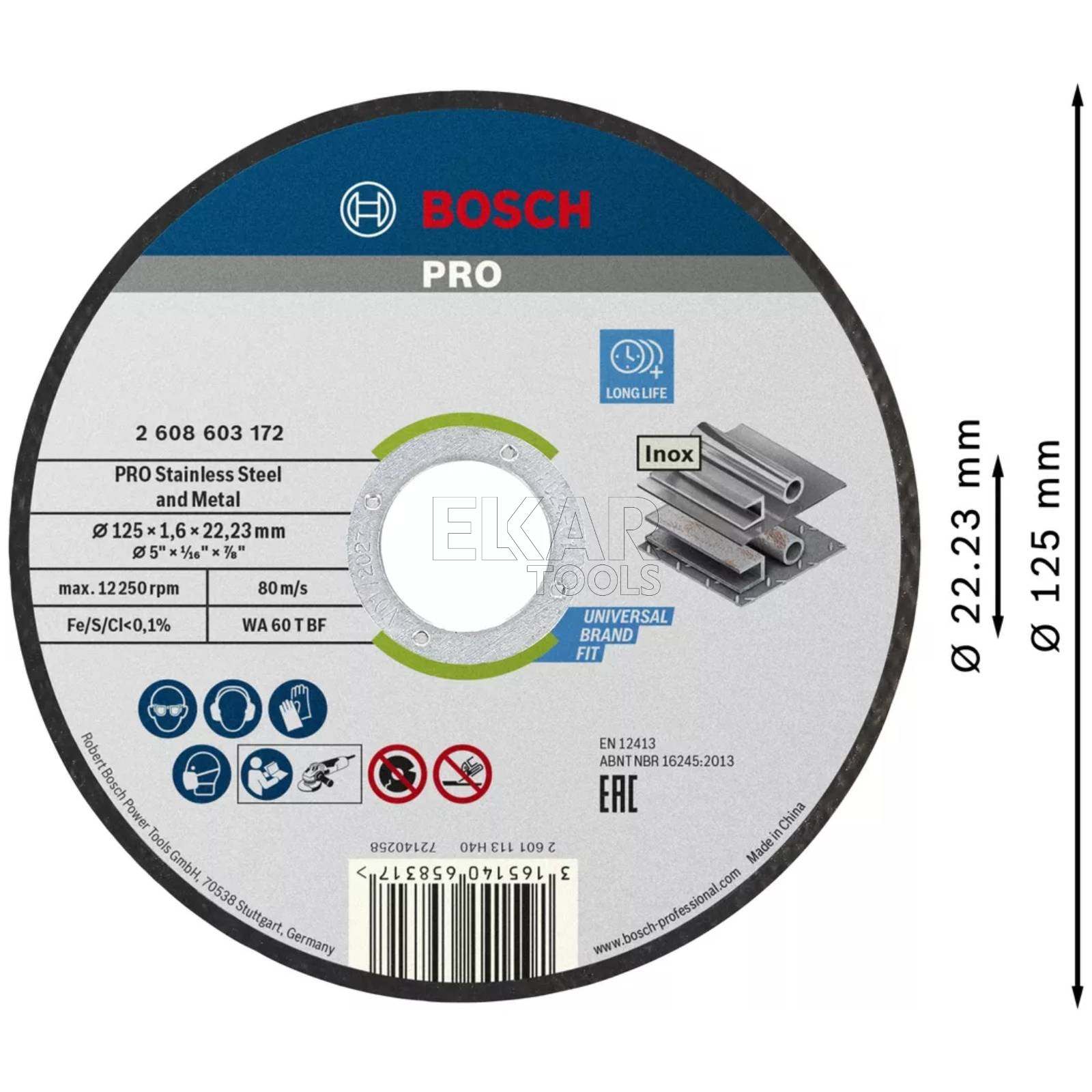- Rodzaj tarczy: korundowa tarcza tnąca PRO Stainless Steel and Metal, 125 × 1,6 × 22,23 mm, prosta
