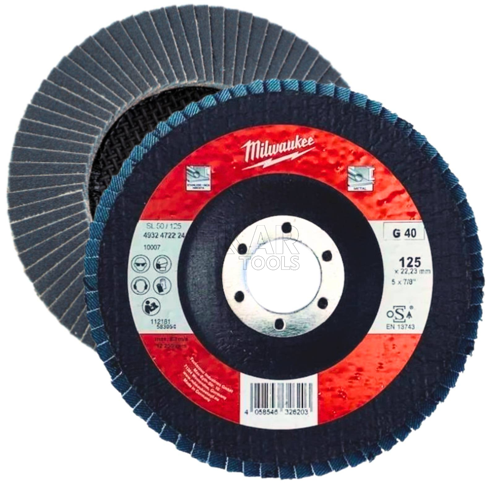 Tarcza listkowa cyrkonowa Milwaukee 125 mm G40 4932472224 to wydajne akcesorium do szlifierek kątowych, zaprojektowane do szybkiego zdzierania materiału i obróbki zgrubnej metalu. Ziarno z tlenku cyrkonu samoczynnie się ostrzy pod naciskiem, zapewniając stałą agresywność cięcia, wysoką wydajność oraz długą żywotność nawet podczas pracy z twardą stalą i stalą nierdzewną. Gradacja G40 idealnie sprawdza się przy usuwaniu spawów, gratowaniu krawędzi, czyszczeniu rdzy i przygotowaniu powierzchni pod dalszą obróbkę, oferując szybkie tempo szlifowania przy zachowaniu kontroli nad efektem. Równomiernie ułożone listki pracują „na chłodno”, ograniczając ryzyko przypaleń i poprawiając komfort pracy, a wzmocniona podkładka z włókna szklanego zwiększa stabilność oraz bezpieczeństwo użytkowania. Standardowy otwór montażowy 22,23 mm gwarantuje kompatybilność z większością popularnych szlifierek kątowych 125 mm.