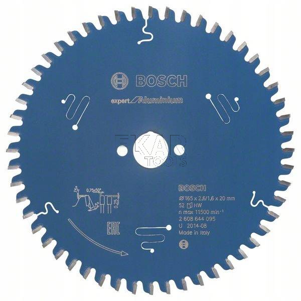 Bosch tarcza pilarska 165/20 x 2,6mm z52 Expert for Aluminium DO PILAREK I ZAGŁĘBIAREK