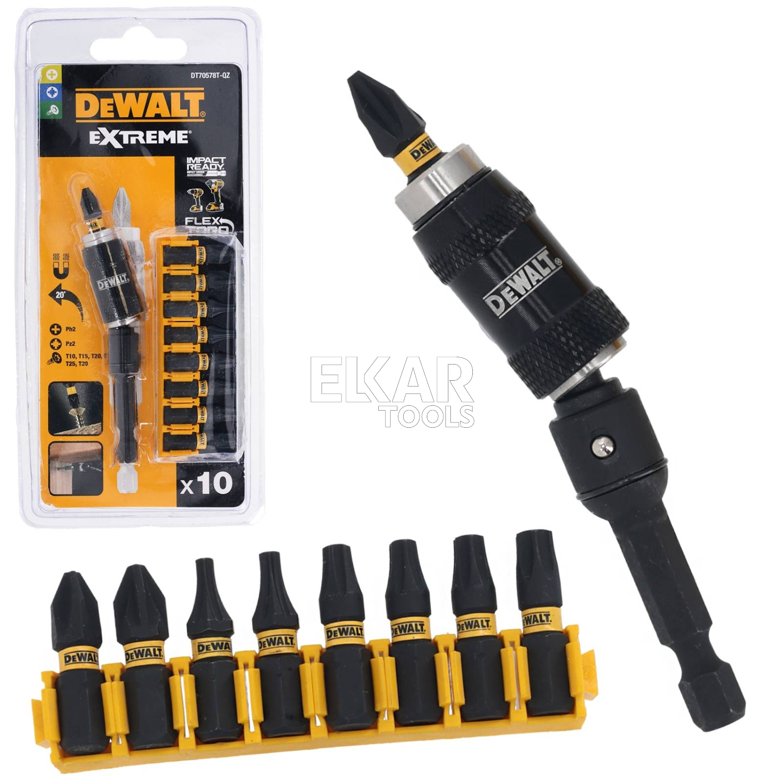 Uchwyt magnetyczny kątowy + bity DeWalt FLEXTORQ DT70578T