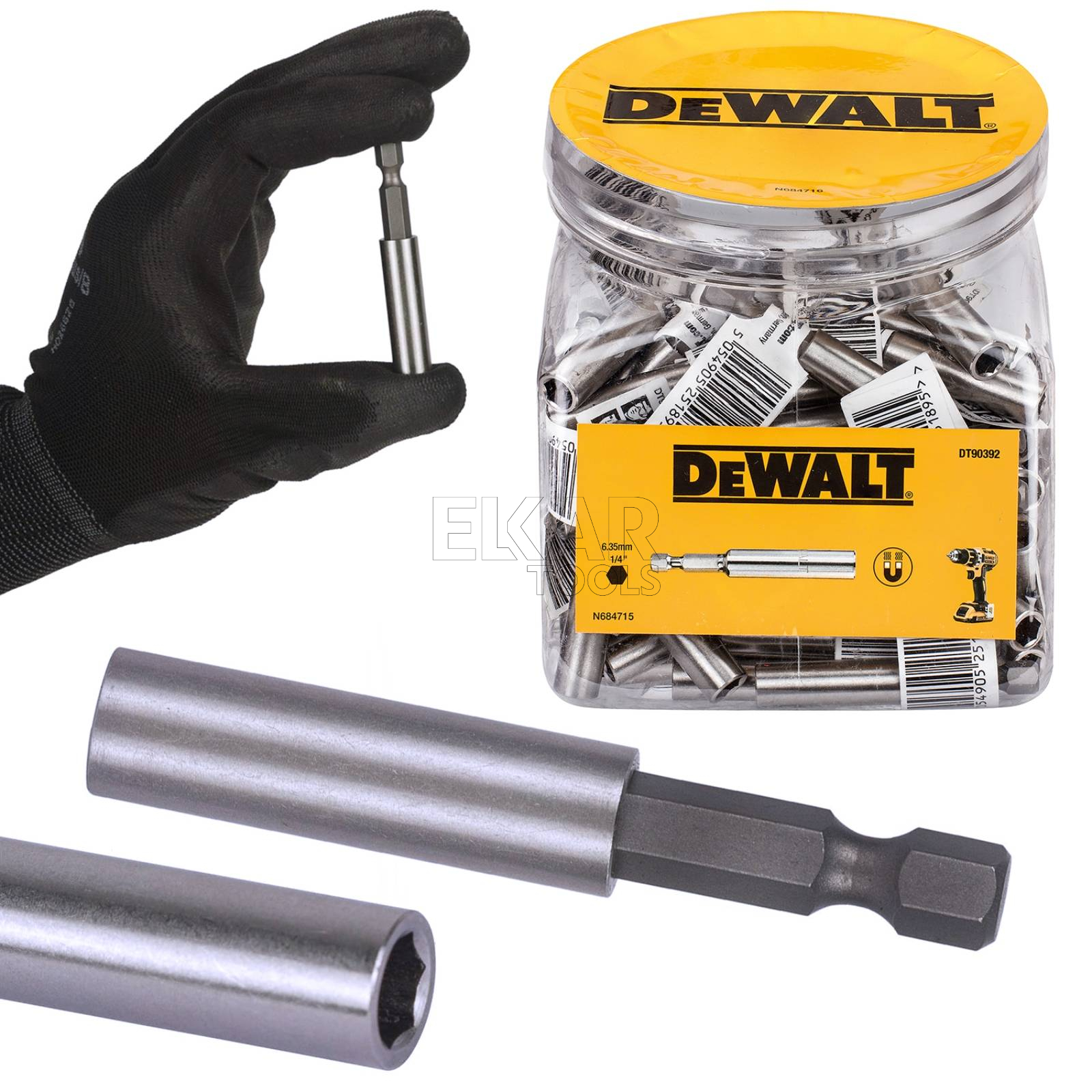 Uchwyt magnetyczny na bity 1/4" 60 mm DeWalt DT90392 to niezawodne akcesorium przeznaczone do pracy z wkrętarkami i zakrętarkami udarowymi. Dzięki mocnemu magnesowi uchwyt skutecznie przytrzymuje bity, zapobiegając ich wypadaniu podczas pracy w trudno dostępnych miejscach czy przy intensywnym wkręcaniu. Długość 60 mm zapewnia doskonały balans pomiędzy zasięgiem a kontrolą, umożliwiając precyzyjne prowadzenie wkrętów nawet w ciasnych przestrzeniach. Standardowe mocowanie 1/4" HEX gwarantuje pełną kompatybilność z większością elektronarzędzi dostępnych na rynku, co czyni ten uchwyt uniwersalnym wyborem dla profesjonalistów i majsterkowiczów. Solidna konstrukcja i precyzyjne wykonanie zapewniają wysoką trwałość nawet przy częstym użytkowaniu w wymagających warunkach. DeWalt DT90392 to doskonały wybór dla każdego, kto ceni sobie niezawodność, wygodę oraz szybkość pracy z bitami podczas montażu, napraw czy prac wykończeniowych. Idealny do zastosowań domowych i profesjonalnych.