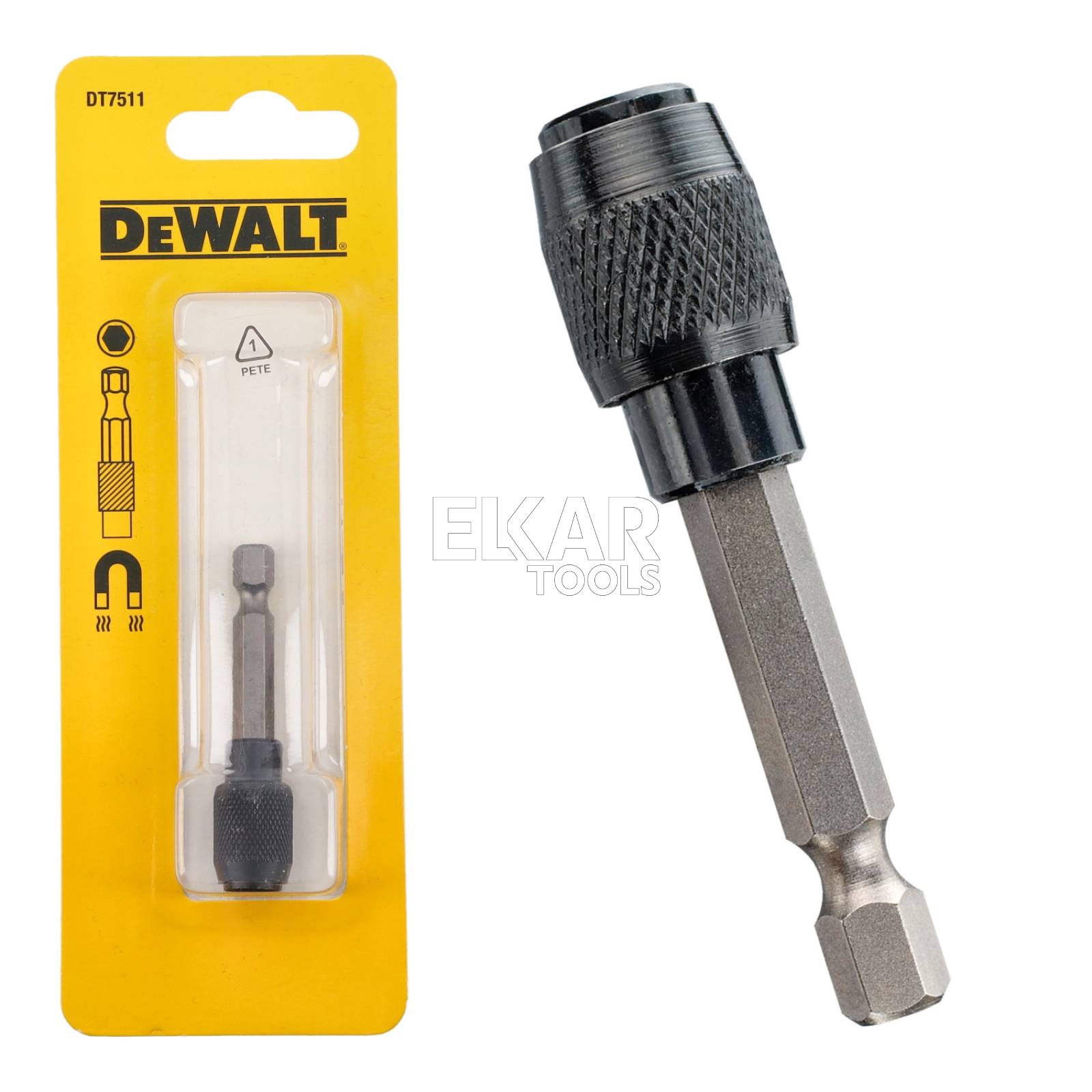 Uchwyt szybkomocujący magnetyczny do bitów DeWalt DT7511 o długości 60 mm to praktyczne akcesorium, które zwiększa komfort i efektywność pracy z wkrętarkami oraz wiertarkami. Dzięki solidnemu mechanizmowi szybkomocującemu umożliwia błyskawiczną wymianę bitów bez potrzeby użycia dodatkowych narzędzi, co znacznie przyspiesza realizację zadań montażowych. Wbudowany magnes o dużej sile przyciągania stabilnie utrzymuje bit w uchwycie oraz zapobiega jego wypadaniu podczas pracy, nawet w trudno dostępnych miejscach.