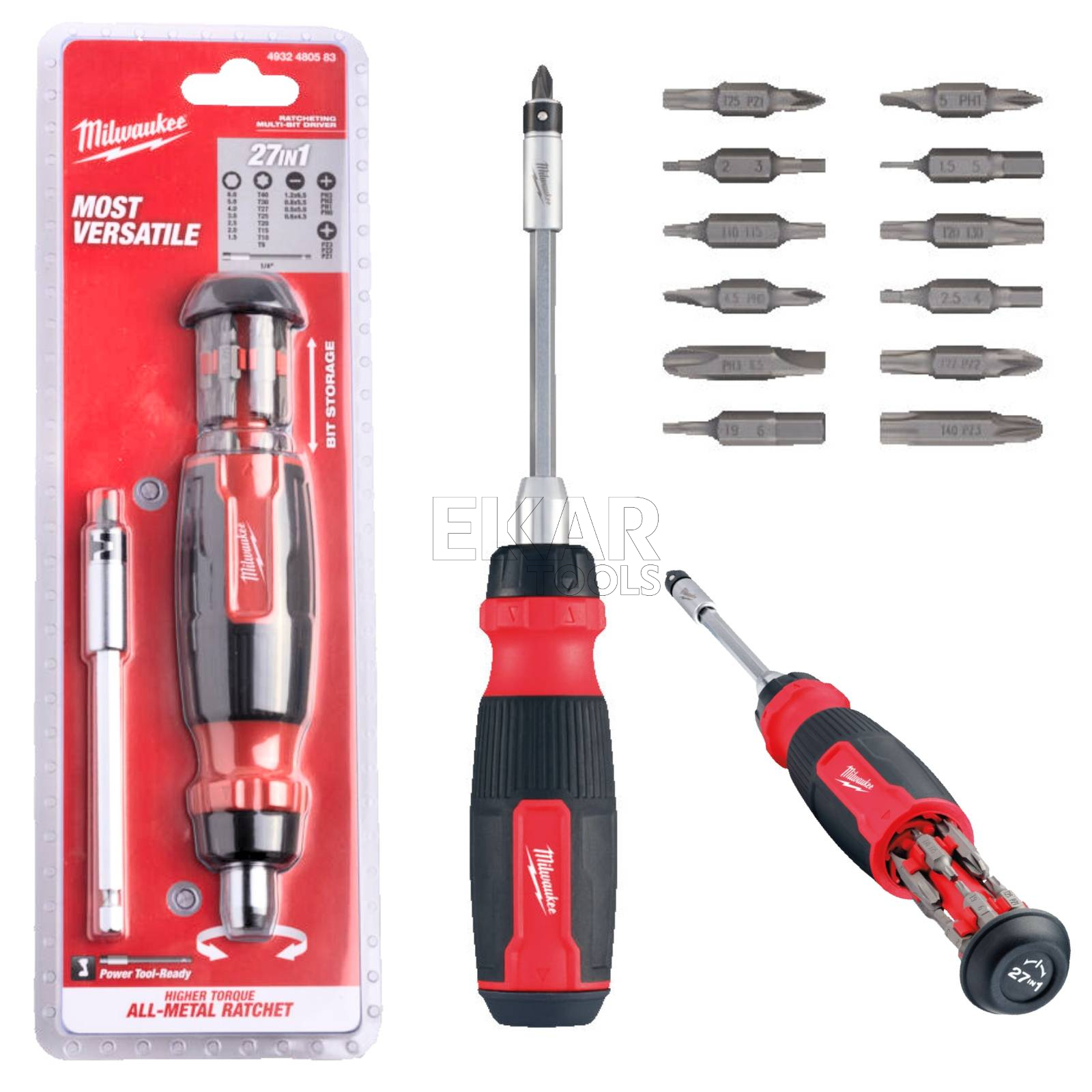 Uniwersalny wkrętak z grzechotką i bitami 27w1 Milwaukee 4932480583