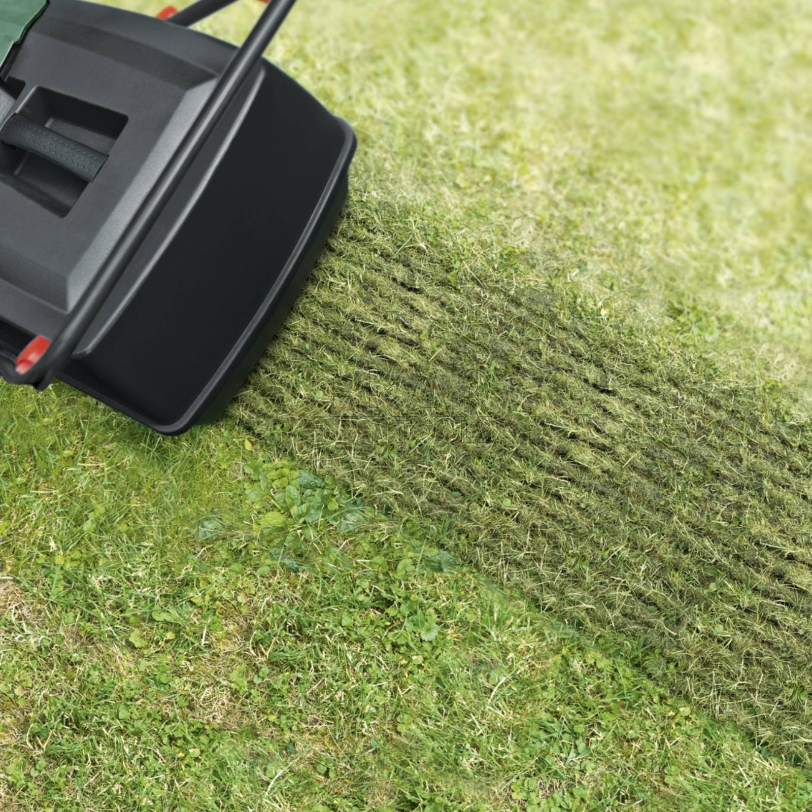 - Wysoka wydajność: połączenie mocnego silnika 1100 W i noży ze stali węglowej umożliwia szybką i efektywną wertykulację bez blokowania narzędzia.