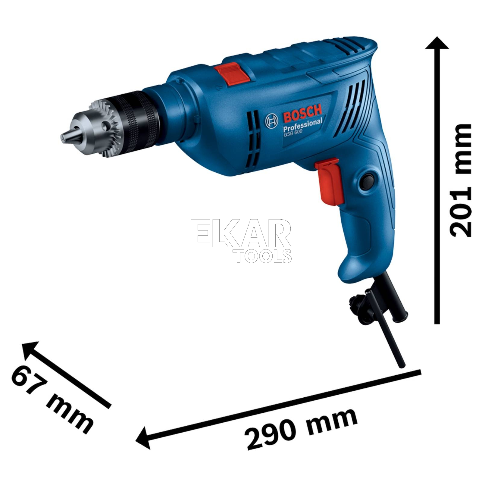 Model GSB 600 Professional jest wyposażony w wytrzymały i wydajny oraz ulepszony silnik o mocy 600 W, który pomaga oszczędzać energię i skraca czas wykonania pracy. Elektronarzędzie zapewnia doskonałą wydajność i lepszą tolerancję przy dużym obciążeniu. Wiertarka udarowa 13 mm oferuje trwałość dzięki ulepszonej szczotce węglowej oraz wysokiej jakości konstrukcji. Dodatkowe żebrowanie zapewnia lepsze zamocowanie rękojeści dodatkowej, co zapobiega urazom nadgarstka. Wiertarka udarowa jest wszechstronna, a jej głównym obszarem zastosowań jest wiercenie w murze, metalu i drewnie. Można jej także używać do wycinania otworów i wkręcania wkrętów w płytach metalowych i drewnianych.