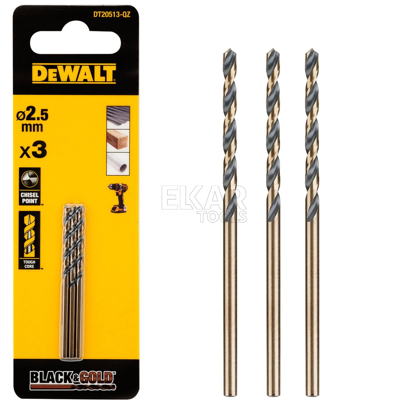 Wiertła do metalu 2,5mm 3szt. HSS-G DeWalt BLACK GOLD DT20513