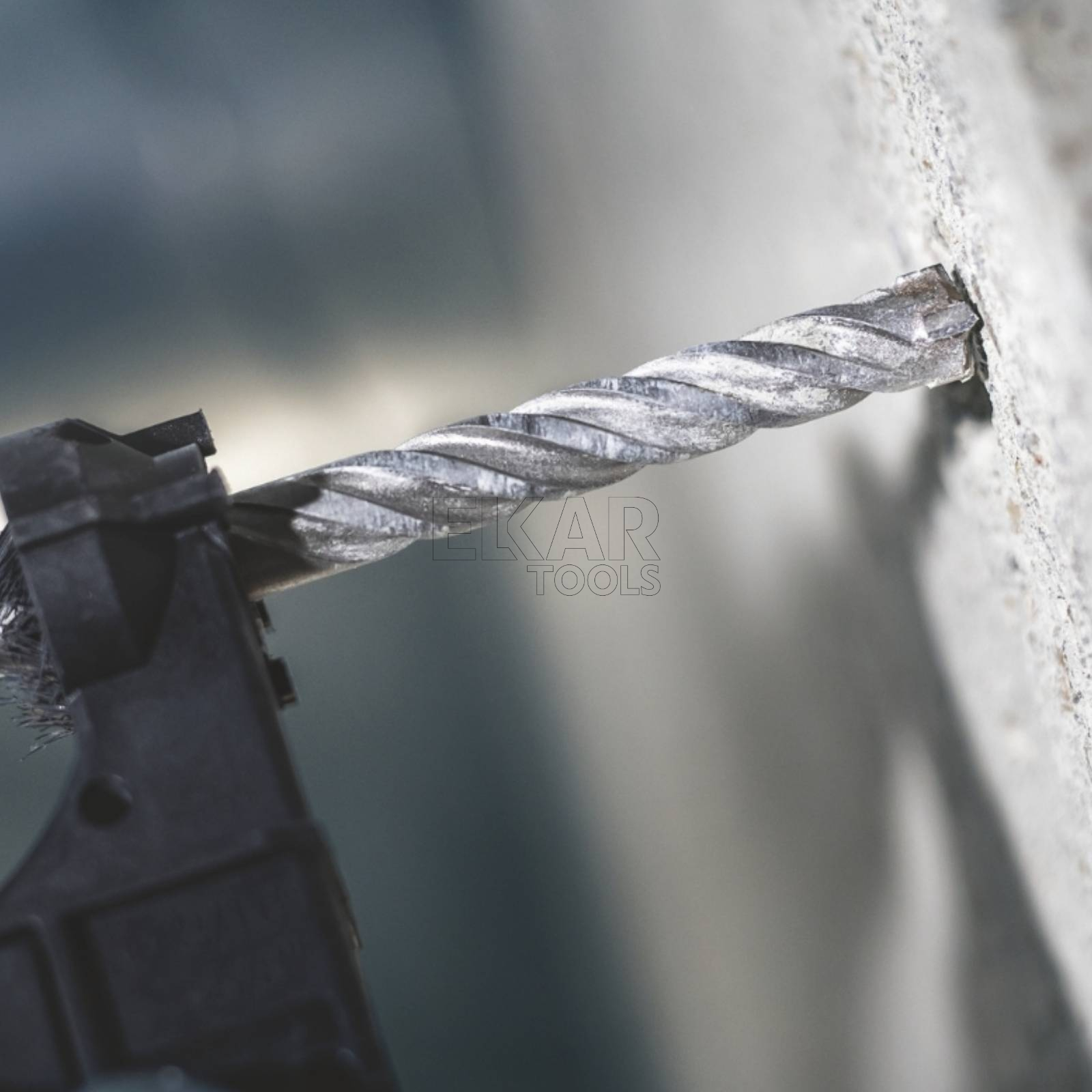 Beton zbrojony jest materiałem powszechnie używanym w budownictwie, a elektrycy, hydraulicy czy instalatorzy HVAC często muszą wiercić w nim otwory. Wiertła PRO SDS plus-5X bardzo ułatwiają te prace, a dzięki wytrzymałej 4-ostrzowej konstrukcji nie zacinają się w materiale ani nie pękają po uderzeniu w pręt zbrojeniowy. 4-ostrzowa głowica wiertła PRO SDS plus-5X pokryta wysokiej jakości węglikiem wolframu zapewnia wygodę pracy i pozwala wiercić precyzyjne otwory w betonie zbrojonym. Wiertło ma 4 rowki odprowadzające pył, zapewniając długą trwałość użytkową osprzętu.