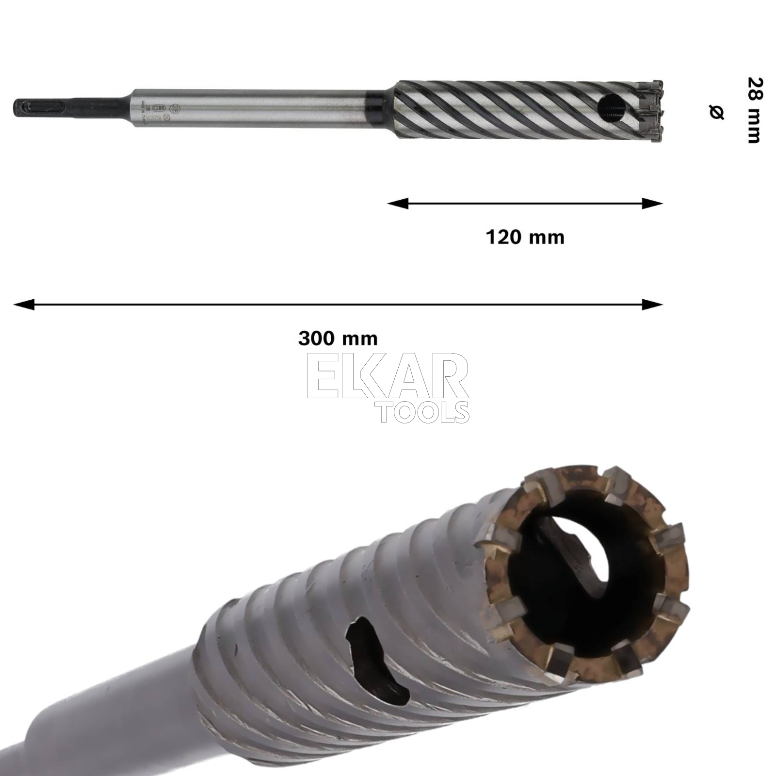 Z wiertłem PRO SDS plus Rebar Cutter wiercenie w betonie zbrojonym i uderzanie w pręty zbrojeniowe nie stanowi już problemu. Jest mocne, trwałe i odporne na ciepło, pozwalając Ci przecinać pręty zbrojeniowe w betonie — za każdym razem. Długotrwałe wiertło PRO SDS plus Rebar Cutter do dobry wybór dla fachowców budowlanych do wiercenia otworów w betonie zbrojonym. Zęby węglikowe są solidnie zamocowane i mają specjalny kształt, dzięki któremu wiertło jest odporne na zużycie i pozwala szybko wiercić w prętach zbrojeniowych. Rowki skutecznie usuwają pył, a otwór rozszerzający wiertła redukuje ciepło i pomaga w usuwaniu skrawków metalu.