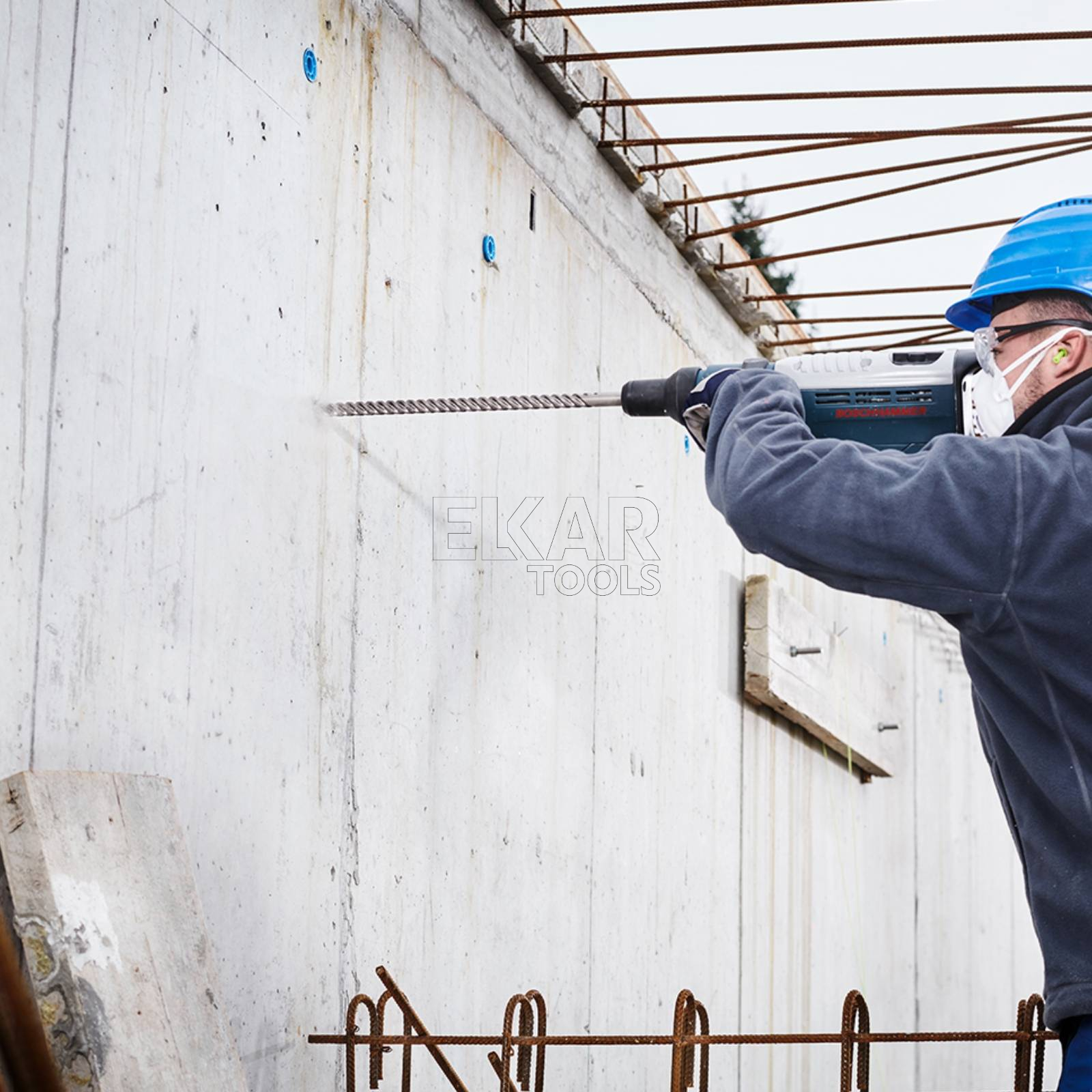Wiertło udarowe Bosch EXPERT SDS max-8X umożliwia specjalistom z branży budowlanej regularne wiercenie w betonie i betonie zbrojonym, np. w przypadku kotew o dużej wytrzymałości lub przedłużeń prętów zbrojeniowych, zapewniając niezrównaną wydajność, niezawodność i trwałość. To jest osprzęt EXPERT do młotów udarowo-obrotowych SDS max. W pełni węglikowa głowica wiertła EXPERT SDS max-8X to zaawansowana czteroostrzowa konstrukcja wykonana z jednego kawałka najtwardszego metalu: nie blokuje się i nie wykazuje słabych punktów przy uderzeniu.