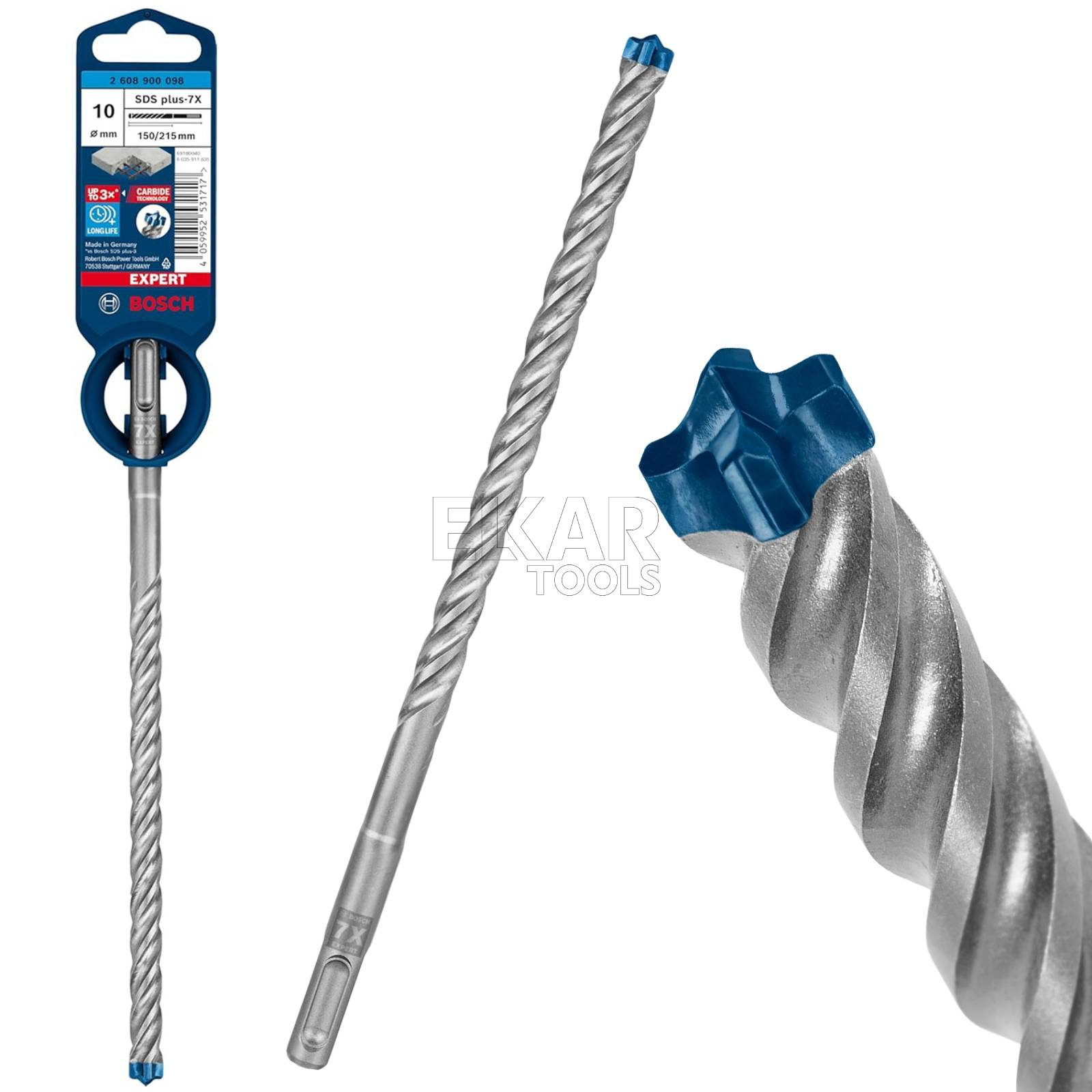 Wiertło udarowe SDS plus-7X 10x150x215mm BOSCH EXPERT 2608900098 umożliwia specjalistom z branży budowlanej regularne wiercenie w betonie i betonie zbrojonym, np. w przypadku mocowań i instalacji, zapewniając niezrównaną wydajność, niezawodność i trwałość. Jest to osprzęt EXPERT do młotów udarowo-obrotowych SDS plus.