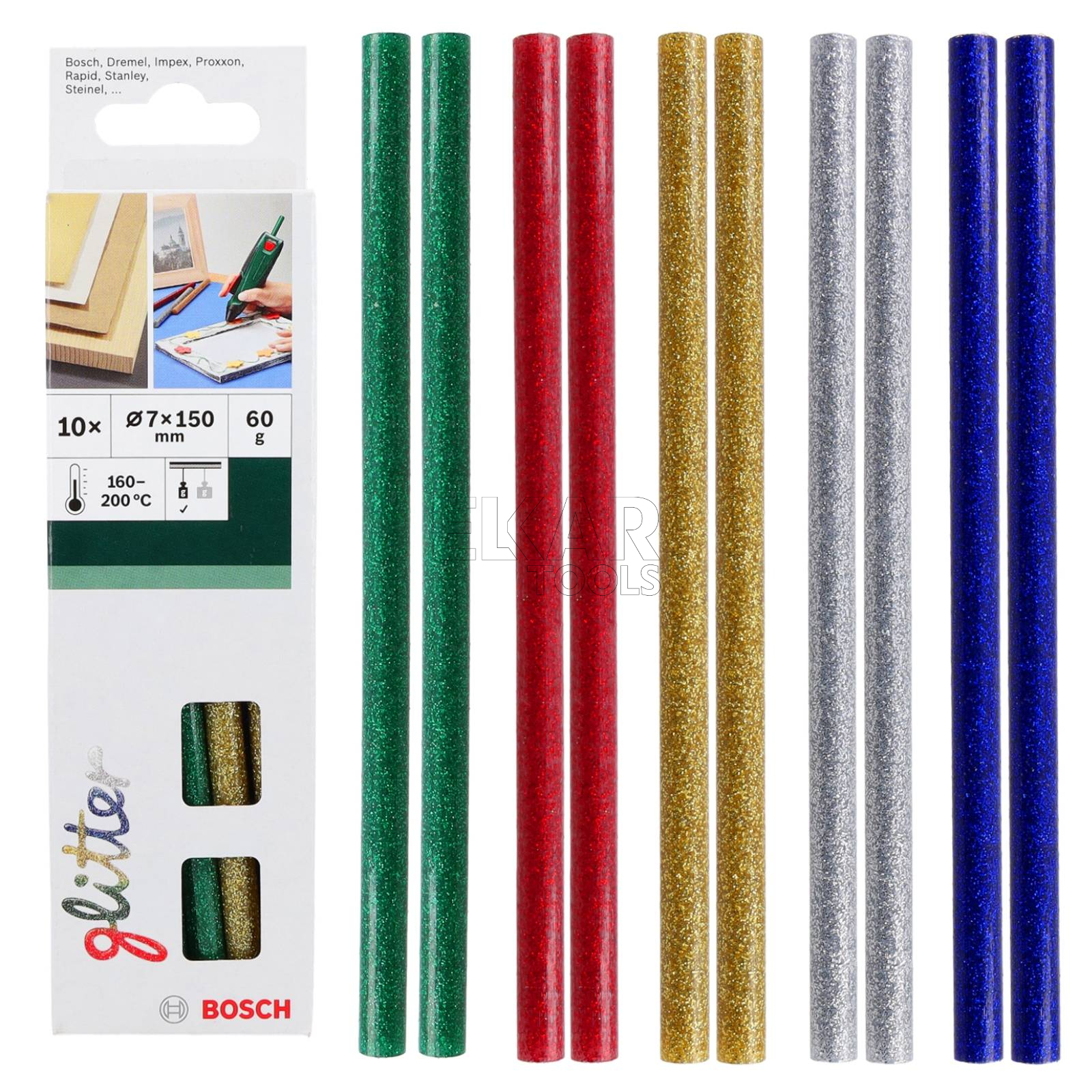 kład kleju na gorąco Glitter Glue Sticks 7 × 150 mm BOSCH 2609256D31 to dekoracyjny materiał klejący stworzony z myślą o kreatywnych projektach, pracach hobbystycznych oraz precyzyjnych zastosowaniach dekoracyjnych. Brokatowa formuła kleju pozwala nie tylko trwale łączyć elementy, ale także uzyskać efektowną, estetyczną spoinę, która pełni funkcję ozdobną bez konieczności dodatkowego wykańczania. Wkłady o średnicy 7 mm są idealne do pistoletów do kleju na gorąco przeznaczonych do drobnych i dokładnych prac, takich jak rękodzieło, dekoracje okolicznościowe, kartki, ozdoby świąteczne czy projekty DIY.