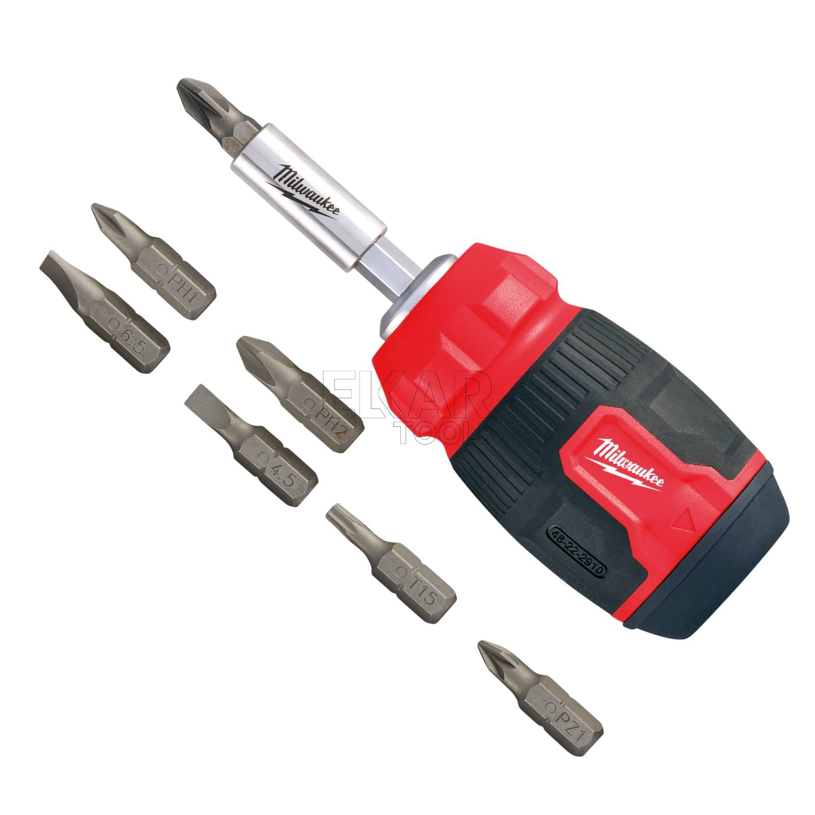 Wkrętak krótki 8w1 ze schowkiem i bitami Milwaukee 4932492807 to kompaktowe i praktyczne narzędzie, idealne do pracy w trudno dostępnych miejscach, gdzie standardowe wkrętaki są zbyt długie. Wyposażony w 8 wymiennych bitów umieszczonych w zintegrowanym schowku w rękojeści, zapewnia szybki dostęp do potrzebnych końcówek bez konieczności noszenia oddzielnego zestawu. Magnetyczna końcówka umożliwia pewne osadzenie bitów i śrub, co znacznie ułatwia precyzyjną pracę w ciasnych przestrzeniach.