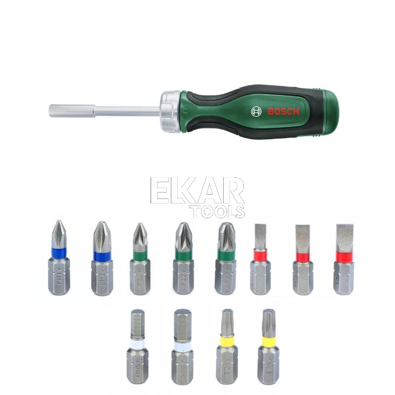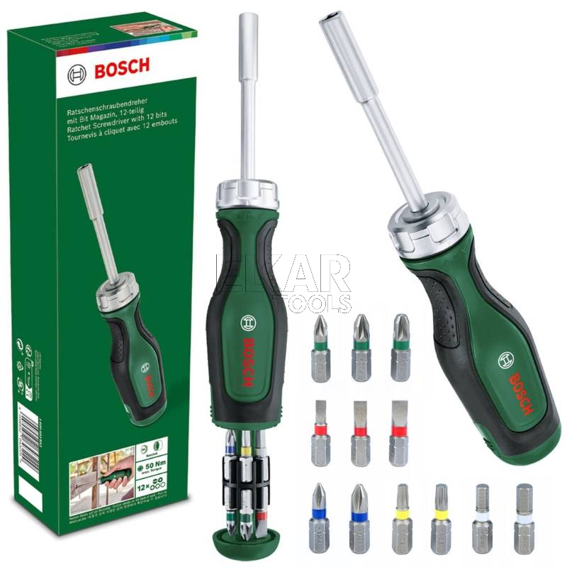 Wkrętak ręczny z grzechotką + 12 bitów 50Nm BOSCH 1600A02BX2