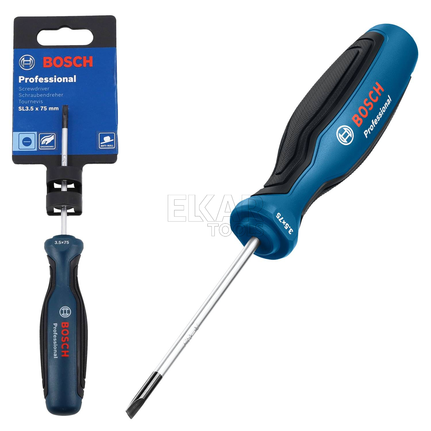 Wkrętak SL 3,5 Bosch Professional o długości trzonka 75 mm jest idealny do wkręcania i odkręcania wkrętów mocujących. Ergonomiczny kształt rękojeści i miękka okładzina Softgrip zapewniają komfortową i łatwą pracę, a podany na rękojeści rozmiar umożliwia szybką identyfikację wkrętaka właściwego dla danej pracy.