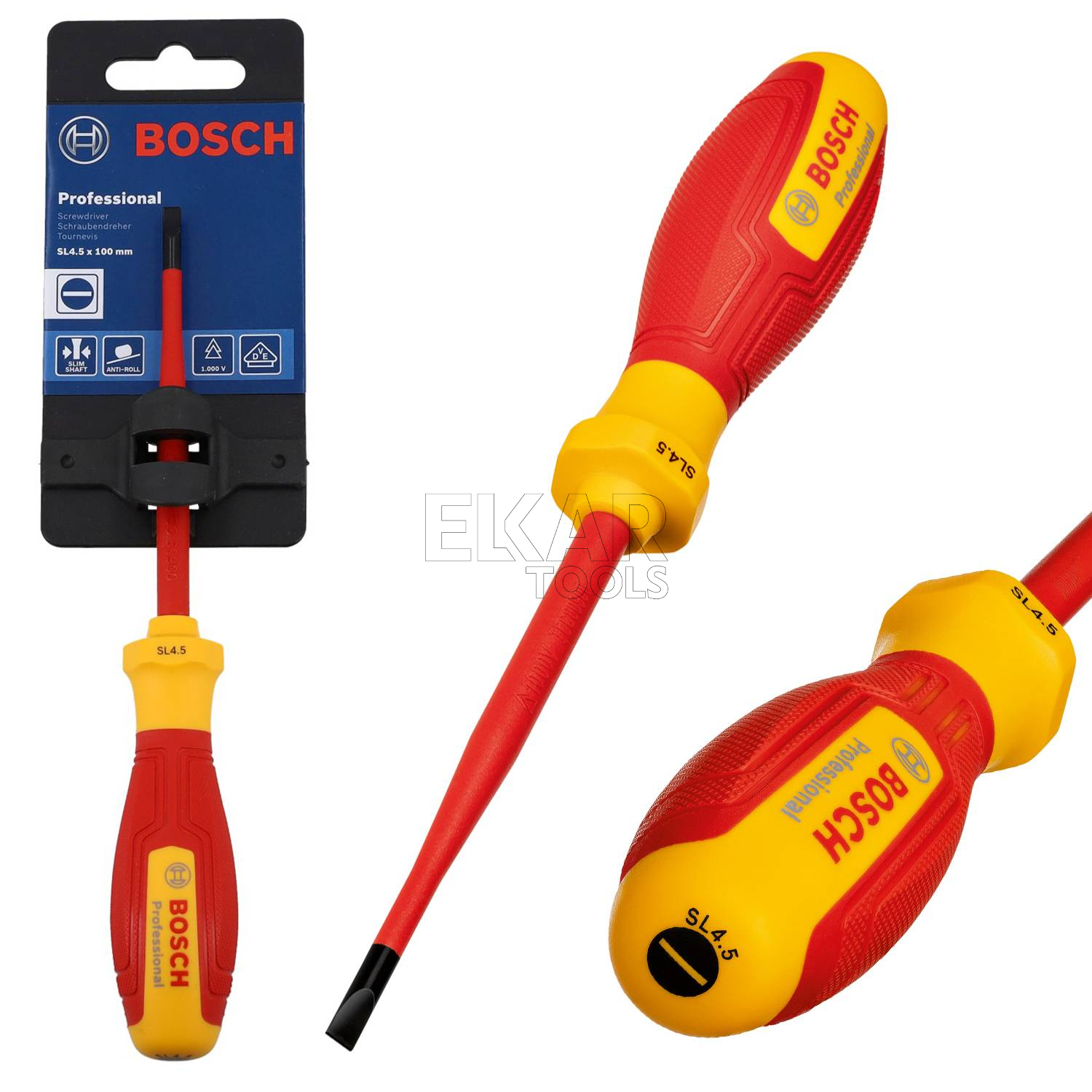 - Izolowane, proste w użyciu i komfortowe narzędzia: wkrętak VDE SL 4,5 x 100 Bosch Professional
