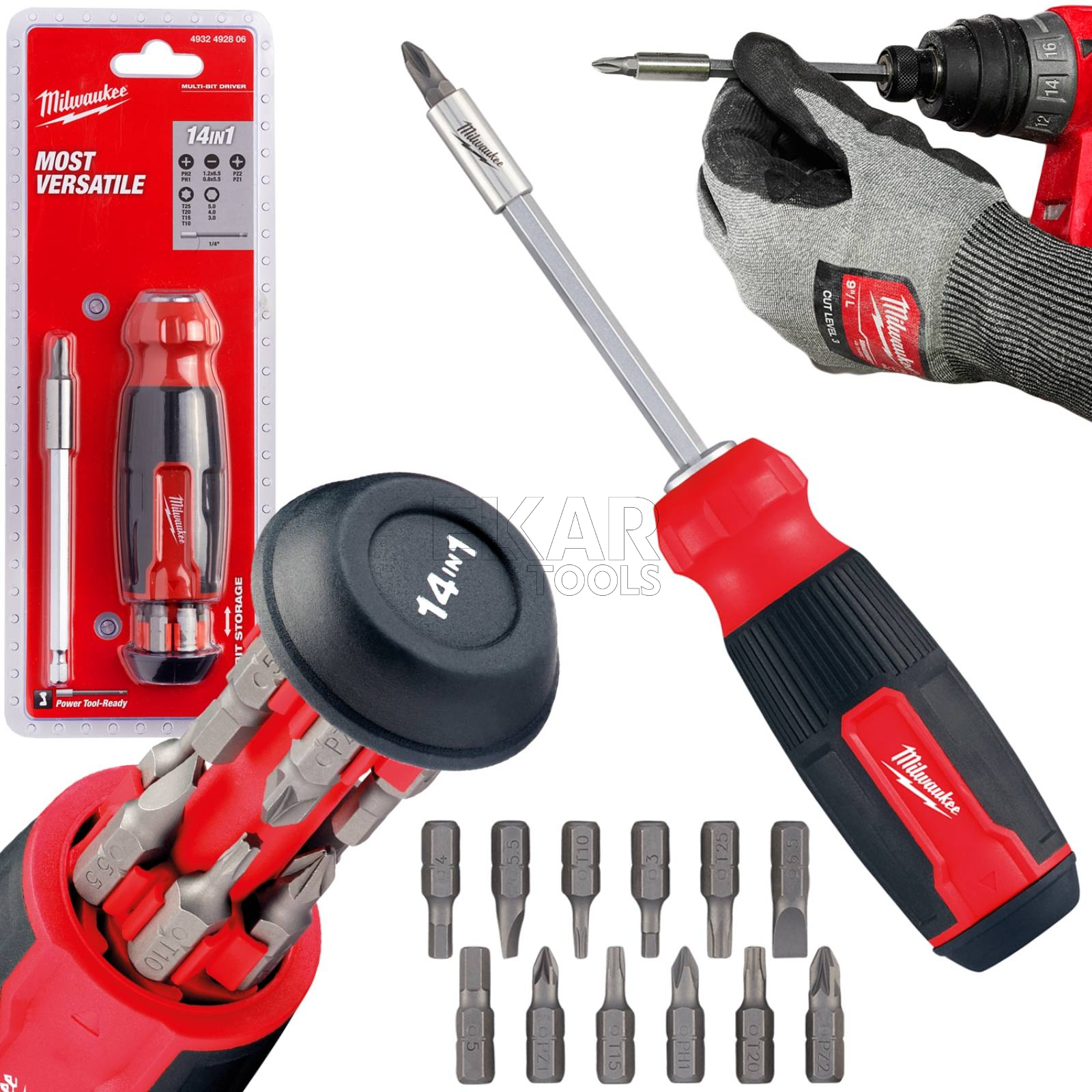 Wkrętak uniwersalny długi Multi-Bit 14w1 Milwaukee 4932492806 to wszechstronne i niezwykle praktyczne narzędzie, które łączy w sobie funkcjonalność aż 14 końcówek roboczych w jednej, kompaktowej konstrukcji. Dzięki wymiennym bitom umieszczonym w rękojeści, użytkownik ma szybki dostęp do różnych typów końcówek – zarówno krzyżakowych, płaskich, TORX, jak i sześciokątnych, co czyni ten wkrętak idealnym rozwiązaniem do prac montażowych, serwisowych i instalacyjnych.