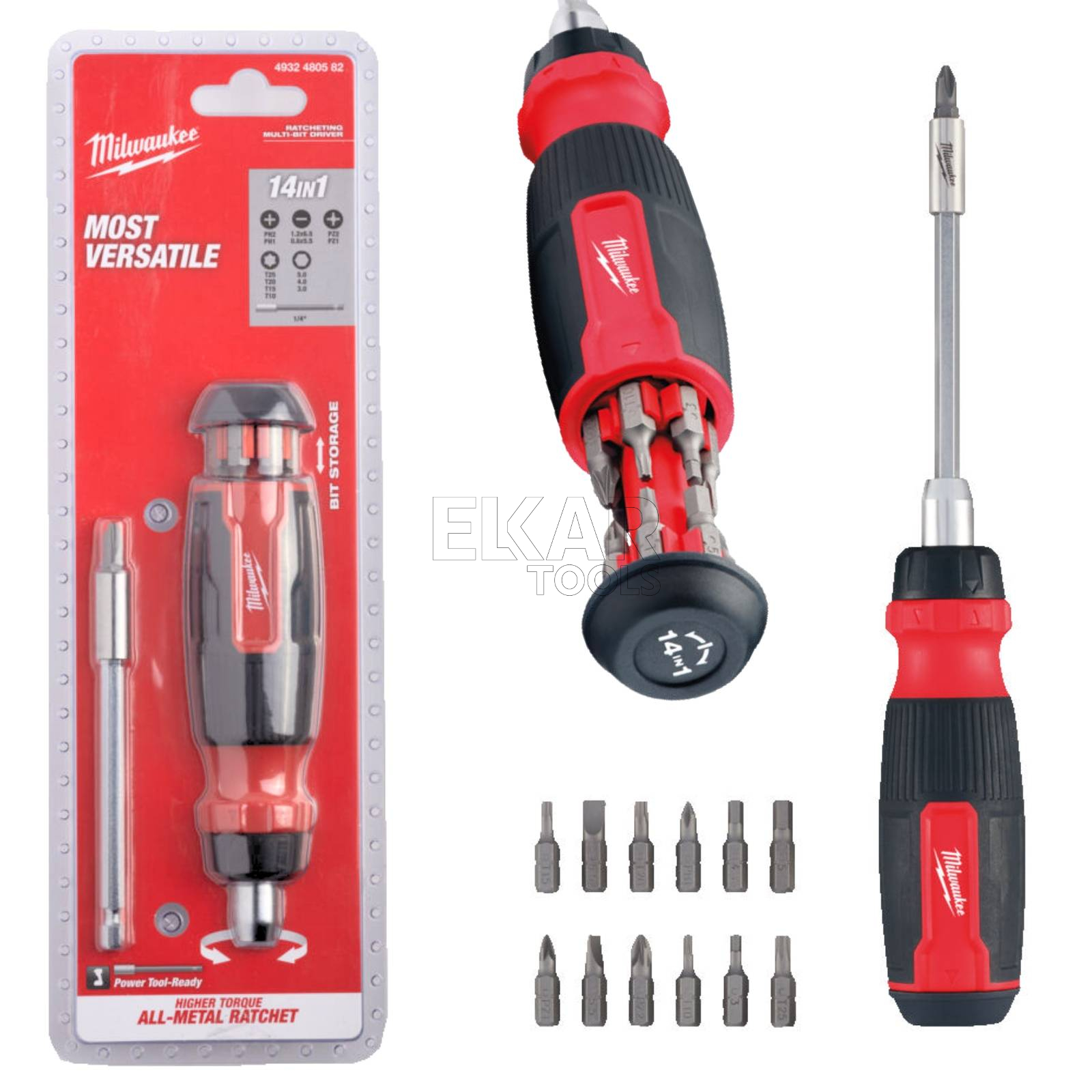 Wkrętak z grzechotką 14w1 i bitami Milwaukee 4932480582