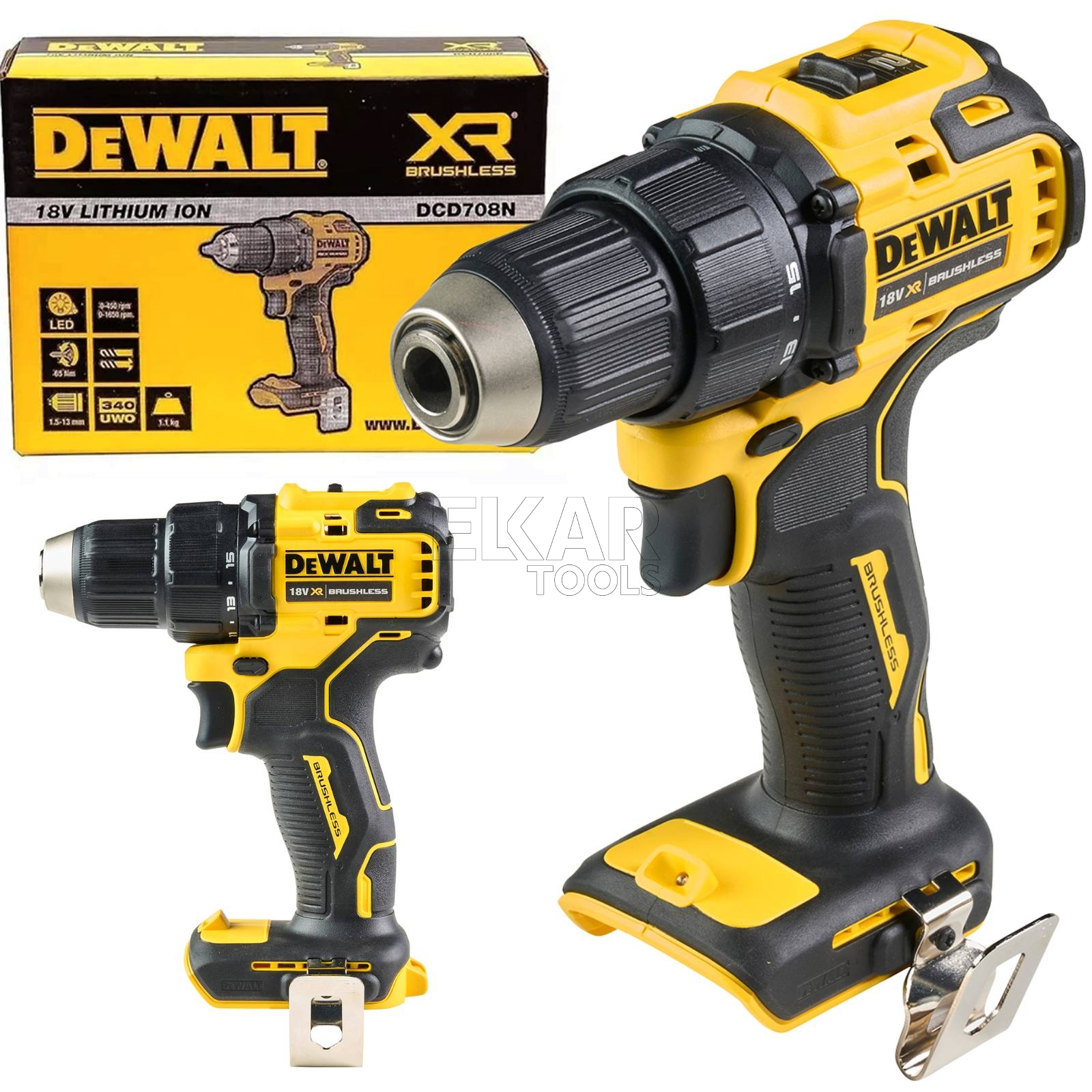 Wkrętarka akumulatorowa DeWalt DCD708N 18V 65 Nm to kompaktowe, a zarazem wyjątkowo mocne narzędzie do wiercenia i wkręcania w drewnie, metalu oraz tworzywach. Bezszczotkowy silnik XR gwarantuje wysoką wydajność, dłuższy czas pracy i mniejsze zużycie podzespołów, a 2-biegowa przekładnia ułatwia dopasowanie prędkości i momentu do zadania.