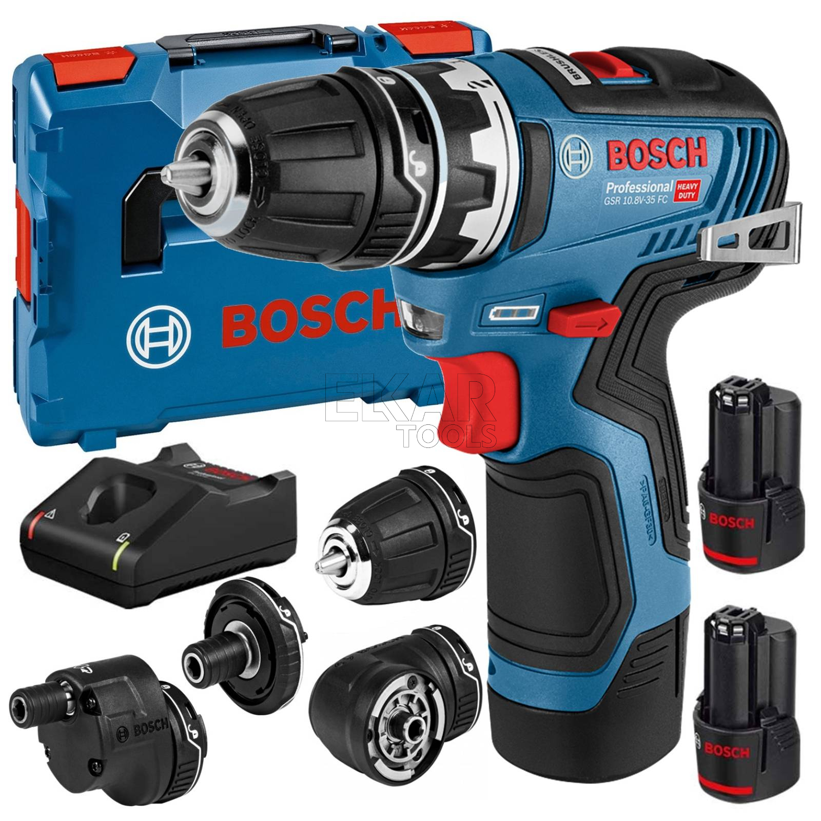 Wkrętarka akumulatorowa BOSCH GSR 12V-35 FC 06019H3000 + uchwyty + 2x3Ah + walizka