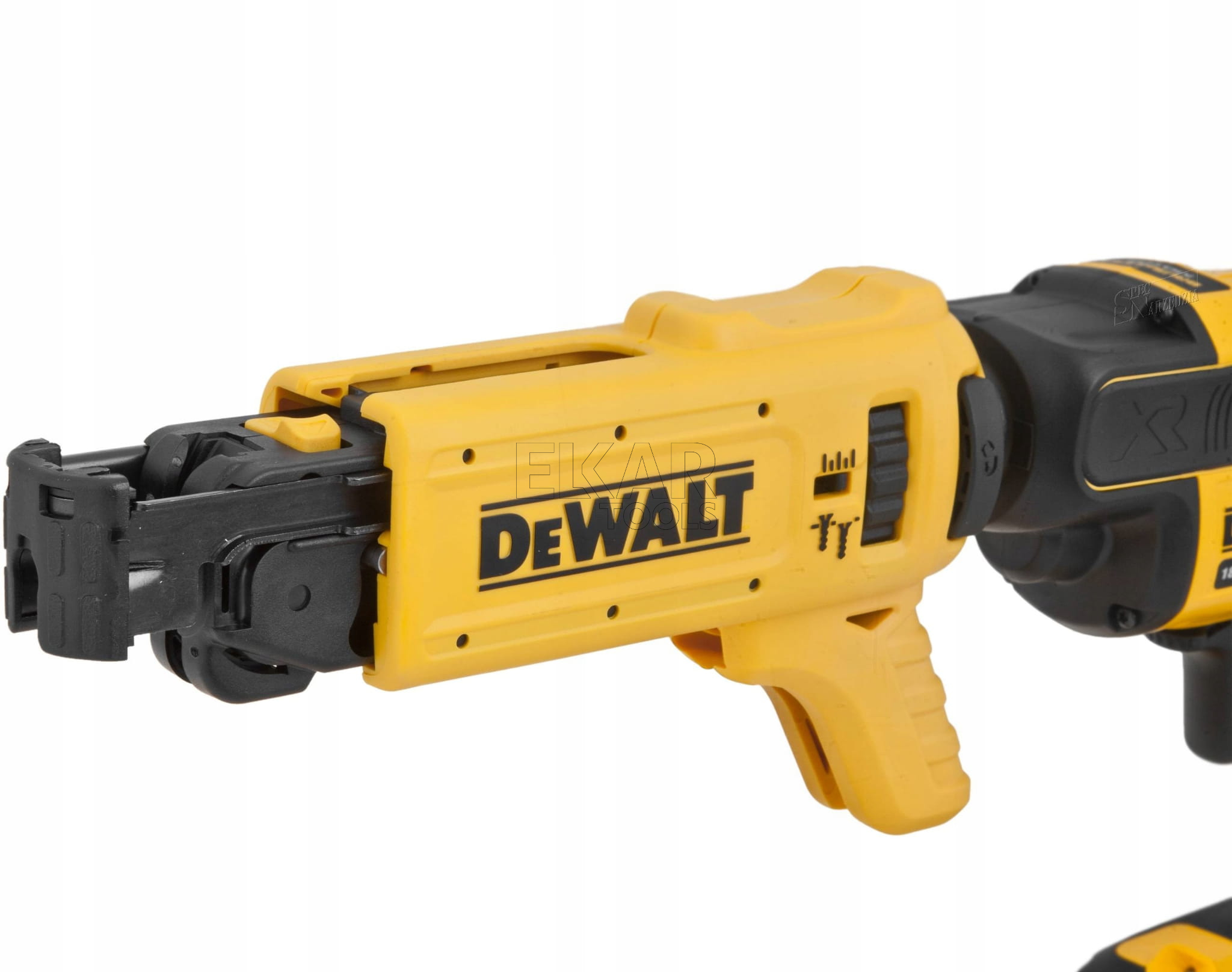 - Szybko zwalniający magazynek akceptuje większość dostępnych na rynku wkrętów na taśmach przyspieszając pracę