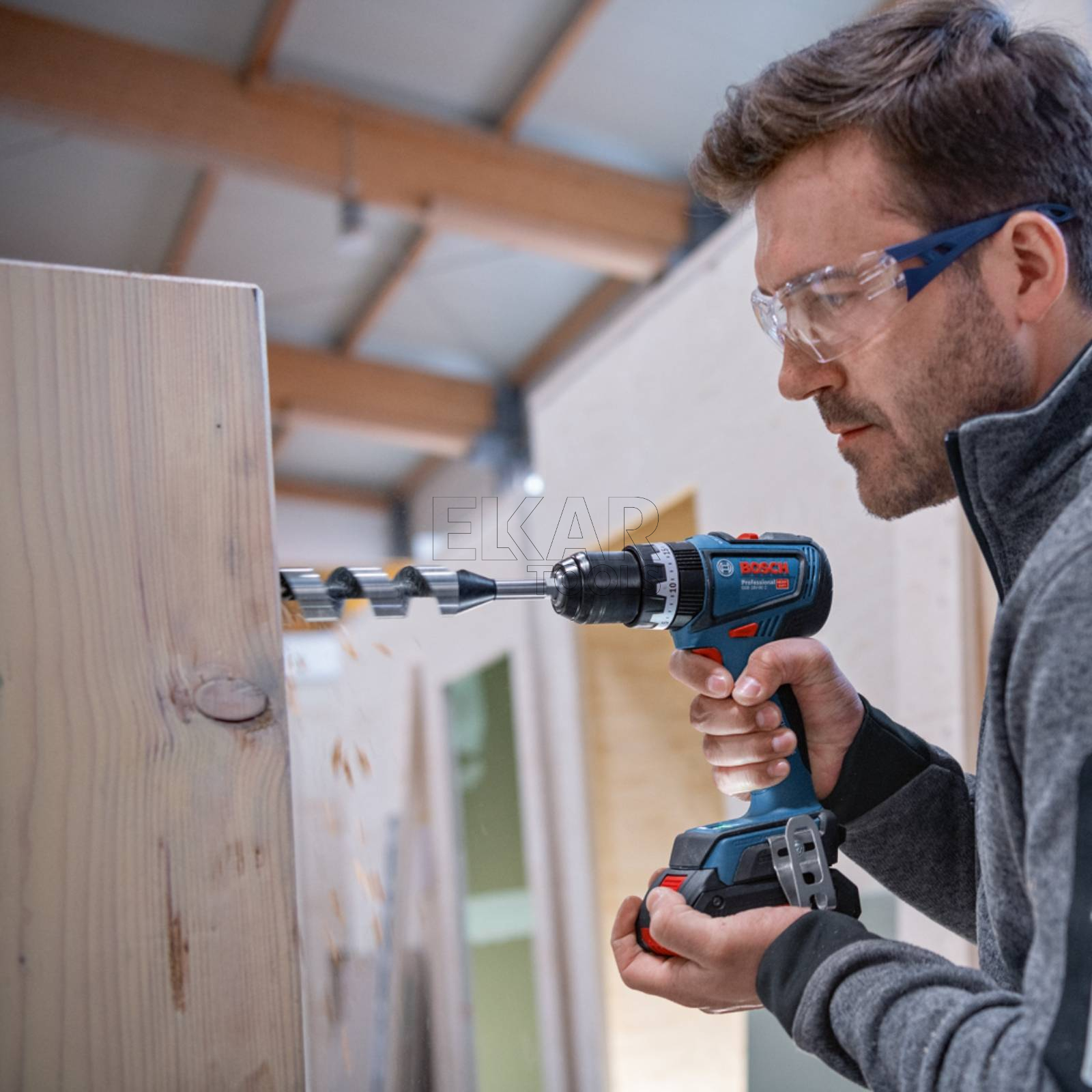 GSB 18V-90 C Professional to wydajna akumulatorowa wiertarka udarowa z silnikiem bezszczotkowym, zapewniająca najwyższą wydajność dzięki momentowi obrotowemu 64 Nm oraz prędkości obrotowej 2 100 min–1. Kompaktowy korpus o długości 175 mm zapewnia komfortową pracę. Wytrzymały metalowy uchwyt wiertarski 13 mm zapewnia doskonałe przeniesienie momentu obrotowego podczas każdego zadania. Wiertarka udarowa zapewnia bardzo wysoki poziom kontroli narzędzia, co pozwala lepiej chronić zdrowie użytkowników, ale także chroni samo narzędzie: Interfejs HMI umożliwia włączenie funkcji KickBack Control, która pozwala zredukować ryzyko nagłej reakcji narzędzia w przypadku zaklinowania osprzętu w materiale. Dodatkowo włączane precyzyjne sprzęgło powoduje wyłączenie się narzędzia po osiągnięciu ustawionego zakresu momentu obrotowego, co redukuje zużycie sprzęgła i zmniejsza hałas.