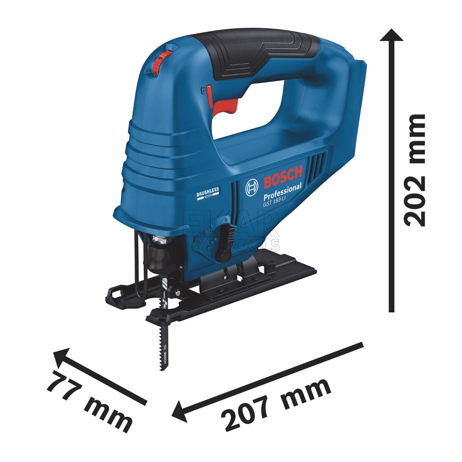 Nieporęczne elektronarzędzia sieciowe mogą okazać się mniej precyzyjne podczas prac poza warsztatem. Jeśli poszukujesz wydajnej wyrzynarki, która będzie łatwa w obsłudze, zapewni wygodne cięcia w różnego rodzaju materiałach, niezależnie od kąta pracy lub otoczenia, a także zmieści się w skrzynce z narzędziami, mamy coś dla Ciebie: wyrzynarka akumulatorowa GST 183-LI Professional umożliwia swobodne poruszanie się dzięki kompaktowym wymiarom. Wydajny silnik bezszczotkowy 18 V wyróżnia się trwałością i pozwala szybko ciąć materiały, oszczędzając Twój czas. Do wyboru są 4 stopnie oscylacji, dzięki czemu możesz wybrać ustawienie, które pomoże Ci szybciej wykonać pracę lub zapewni bardziej precyzyjne cięcie. Dodatkowo elektronarzędzie posiada regulację stopy w zakresie do 45° i możliwość cięcia pod kątem. Ale to jeszcze nie wszystko. Dzięki beznarzędziowemu systemowi Bosch SDS wymiana brzeszczotów jest łatwiejsza, niż myślisz.