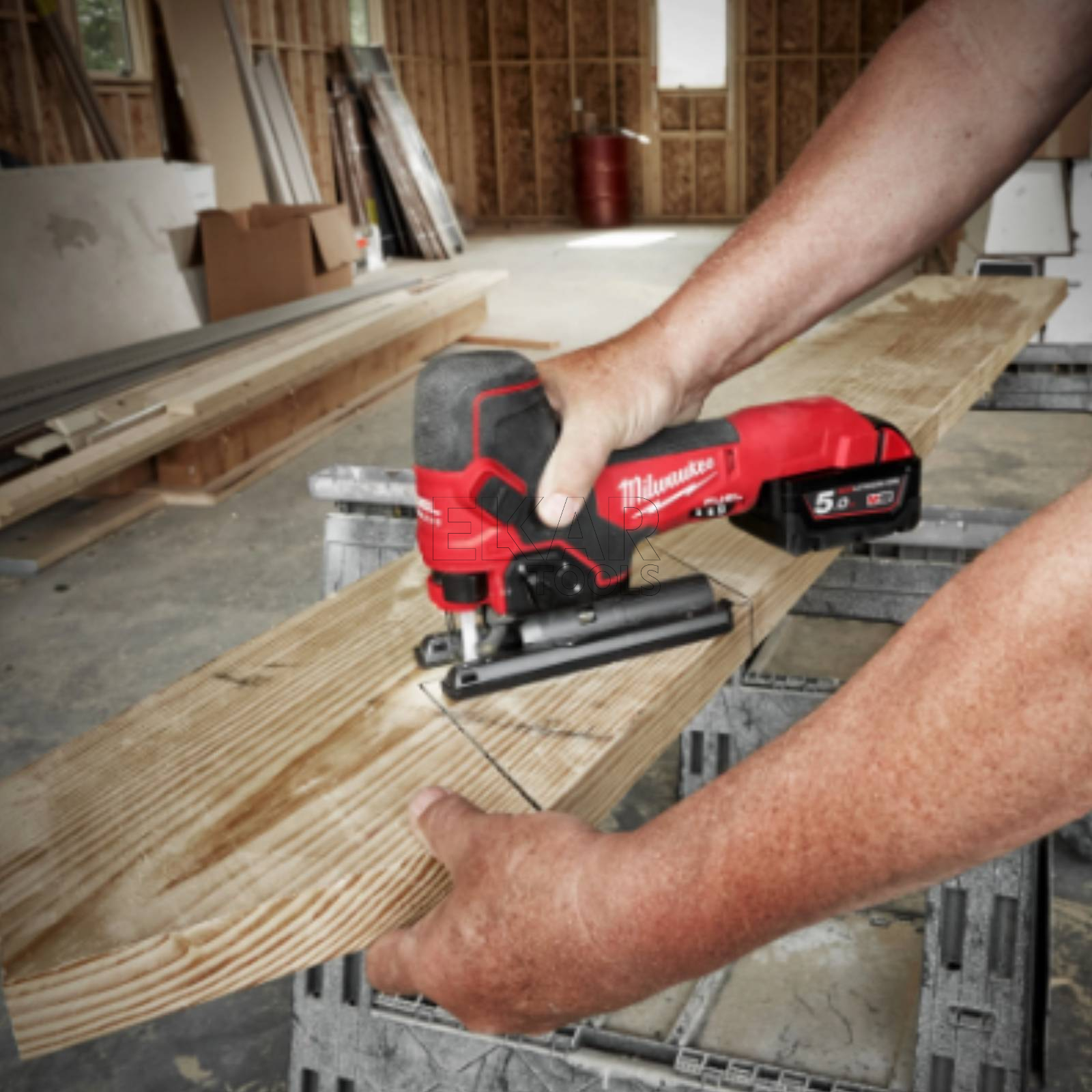 Wyrzynarka akumulatorowa Milwaukee M18 FBJS-0X 4933464799 to profesjonalne narzędzie stworzone z myślą o maksymalnej precyzji, wydajności i niezawodności w pracy. Wyposażona w nowoczesny, bezszczotkowy silnik POWERSTATE™, gwarantuje dłuższą żywotność, większą moc oraz stałą wydajność nawet przy intensywnym użytkowaniu. Dzięki zasilaniu akumulatorowemu 18 V z systemu M18™, wyrzynarka zapewnia pełną swobodę pracy bez kabla – idealna do zastosowań warsztatowych i budowlanych. Model Milwaukee M18 FBJS-0X oferuje wyjątkową kontrolę nad cięciem dzięki płynnej regulacji prędkości (do 3500 suwów/min), 5-stopniowemu ustawieniu skoku wahadłowego oraz precyzyjnemu mechanizmowi prowadzenia brzeszczotu.