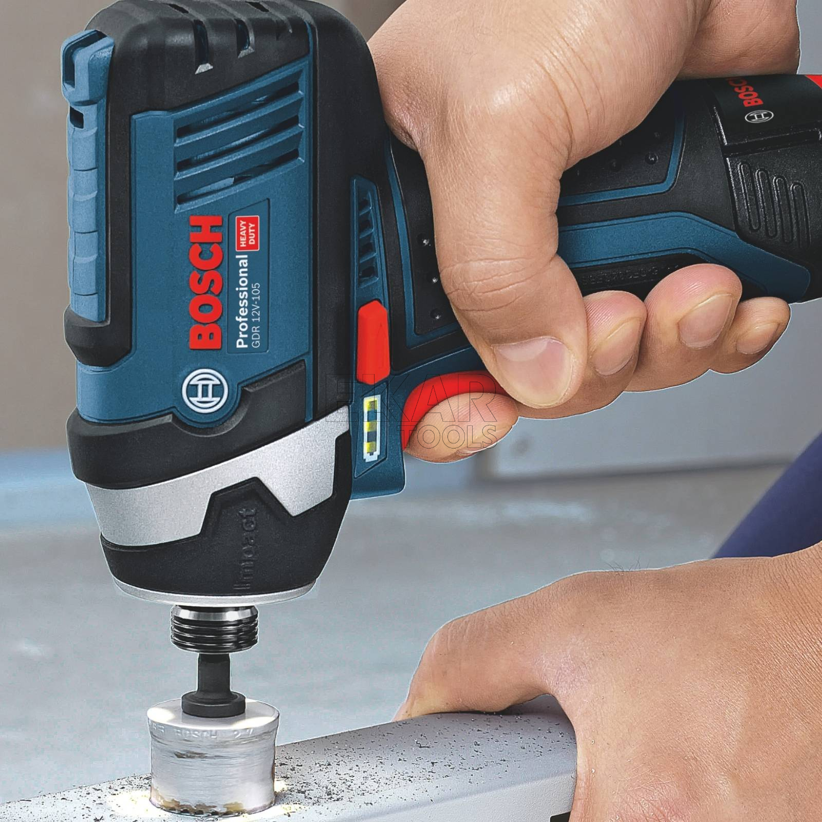 Jest to najbardziej kompaktowa wkrętarka akumulatorowa w klasie 12 V firmy Bosch. Kompaktowa konstrukcja umożliwia pracę ciągłą bez wysiłku także w miejscach trudno dostępnych oraz w sytuacjach wymagających trzymania narzędzia w górze. Silnik narzędzia oferuje ponadto wysoki moment obrotowy 105 Nm, dzięki czemu jest ono odpowiednie do popularnych zastosowań z użyciem akumulatorowej wkrętarki udarowej. Model może osiągać prędkość obrotową do 2 600 min–1, zapewniając szybkie tempo pracy. Elektronarzędzie jest przeznaczone do śrub o średnicach M4 – M12. Produkt jest kompatybilny ze wszystkimi akumulatorami i ładowarkami Bosch 12 V (system profesjonalny 12 V).