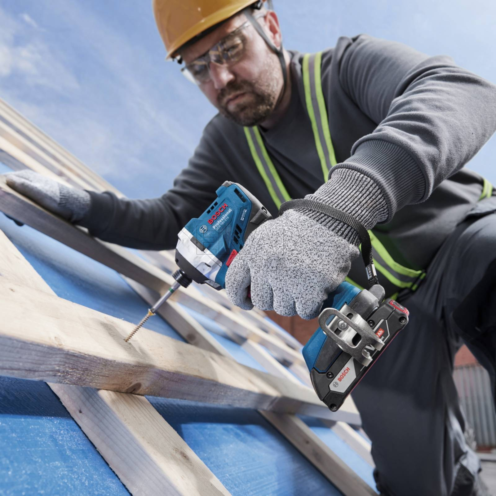 GDR 18V-125 Professional 06019N2002 to narzędzie, które szybko wkręca śruby w drewnie lub metalu z prędkością obrotową 3 300 min–1. Dzięki momentowi obrotowemu 215 Nm z łatwością wkręca także w twardym drewnie. Idealnie sprawdza się w miejscach trudno dostępnych dzięki kompaktowej konstrukcji. Rezultat Twojej pracy będzie zawsze doskonały, nie ma innej możliwości. Narzędzie jest wyposażone w 2 automatyczne tryby wkręcania do metalu i drewna dla śrub o długości łba 121 mm (lub 126 mm, w zależności od wybranego modelu). Model jest także wyposażony w funkcję automatycznego zatrzymania lub zwalniania po rozpoczęciu procedury wkręcania udarowego, co zapobiega uszkodzeniom materiału oraz łbów śrub. Dodatkowo narzędzie zapewnia wszechstronność i komfort dzięki dwufunkcyjnemu uchwytowi do końcówek wkręcających, który umożliwia montaż zarówno końcówek NZ, jak i MZ (dotyczy tylko niektórych modelu).