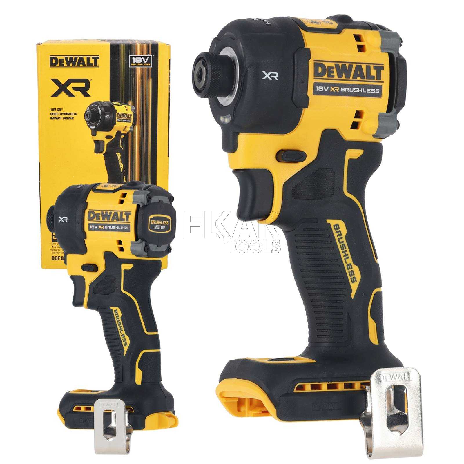 Zakrętarka udarowa hydrauliczna DeWalt DCF870N to nowoczesne narzędzie z serii XR 18V, które łączy wysoką wydajność z wyjątkowo cichą pracą. Dzięki zastosowaniu mechanizmu hydraulicznego, urządzenie generuje znacznie mniej hałasu i wibracji niż tradycyjne zakrętarki udarowe, co czyni je idealnym wyborem do prac w miejscach wymagających ciszy, takich jak biura, szkoły czy mieszkania. Model DCF870N wyposażony jest w bezszczotkowy silnik, który zapewnia moment obrotowy do 56 Nm oraz prędkość obrotową do 3000 obr./min. Częstotliwość udaru wynosi 4200 uderzeń na minutę, co pozwala na szybkie i efektywne wkręcanie nawet w twarde materiały. Kompaktowa konstrukcja o długości zaledwie 101 mm oraz niska waga (około 1 kg bez akumulatora) umożliwiają pracę w trudno dostępnych miejscach i zmniejszają zmęczenie podczas długotrwałego użytkowania.