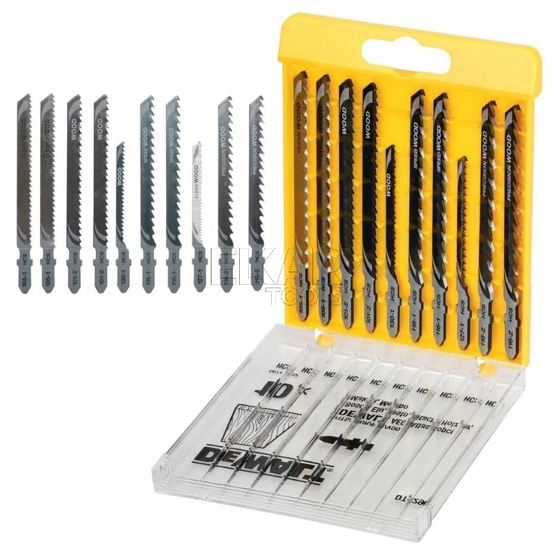 Zestaw 10szt. brzeszczotów do wyrzynarek firmy DeWALT DT2290 z mocowaniem typu T, przeznaczonych do użytku z elektronarzędziami marek: Bosch, DeWalt, Hitachi, Makita, Festool, Metabo itp.