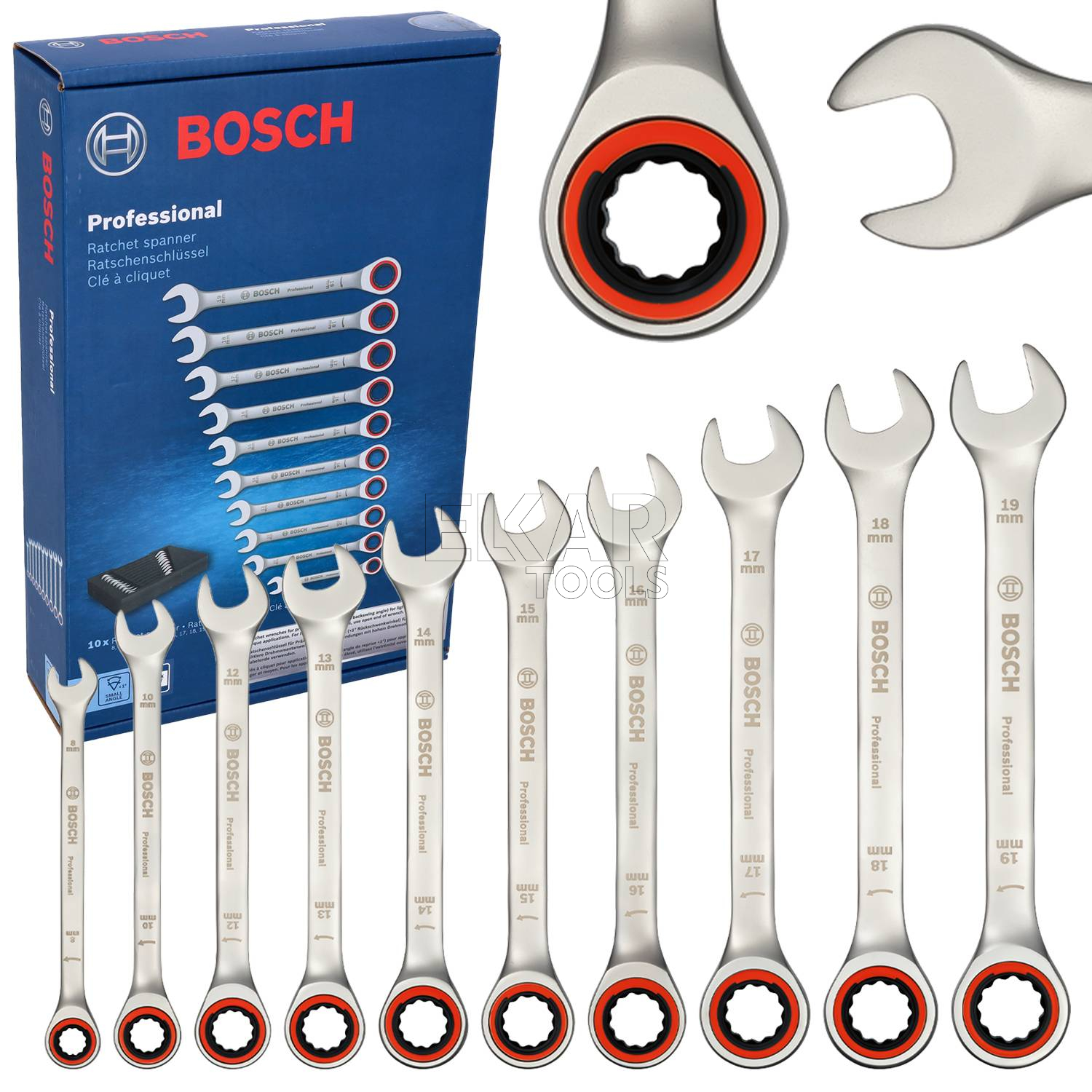 - Rozmiar kluczy: 8, 10, 12, 13, 14, 15, 16, 17, 18 i 19 mm