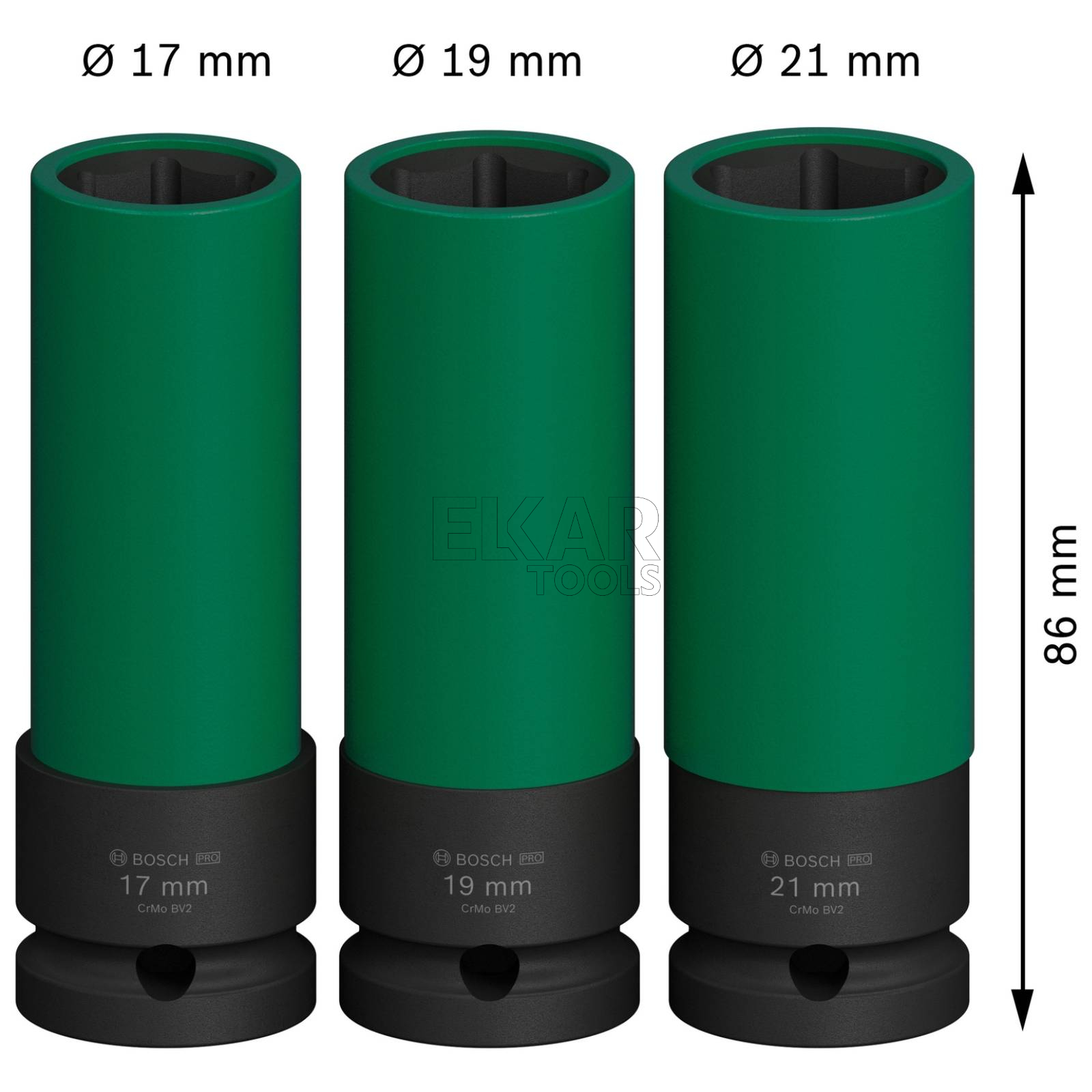 Zestaw 3 nasadek udarowych 1/2 17/19/21mm BOSCH PRO Impact 2608003033