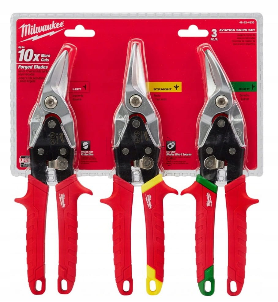 Zestaw 3 nożyc do metalu i blachy Milwaukee 48224533 to kompleksowe rozwiązanie dla profesjonalistów i majsterkowiczów, zapewniające precyzyjne i efektywne cięcie różnych rodzajów blachy i metalu. Zestaw obejmuje trzy rodzaje nożyc, które umożliwiają wszechstronne zastosowanie, od prostych cięć po skomplikowane kształty.