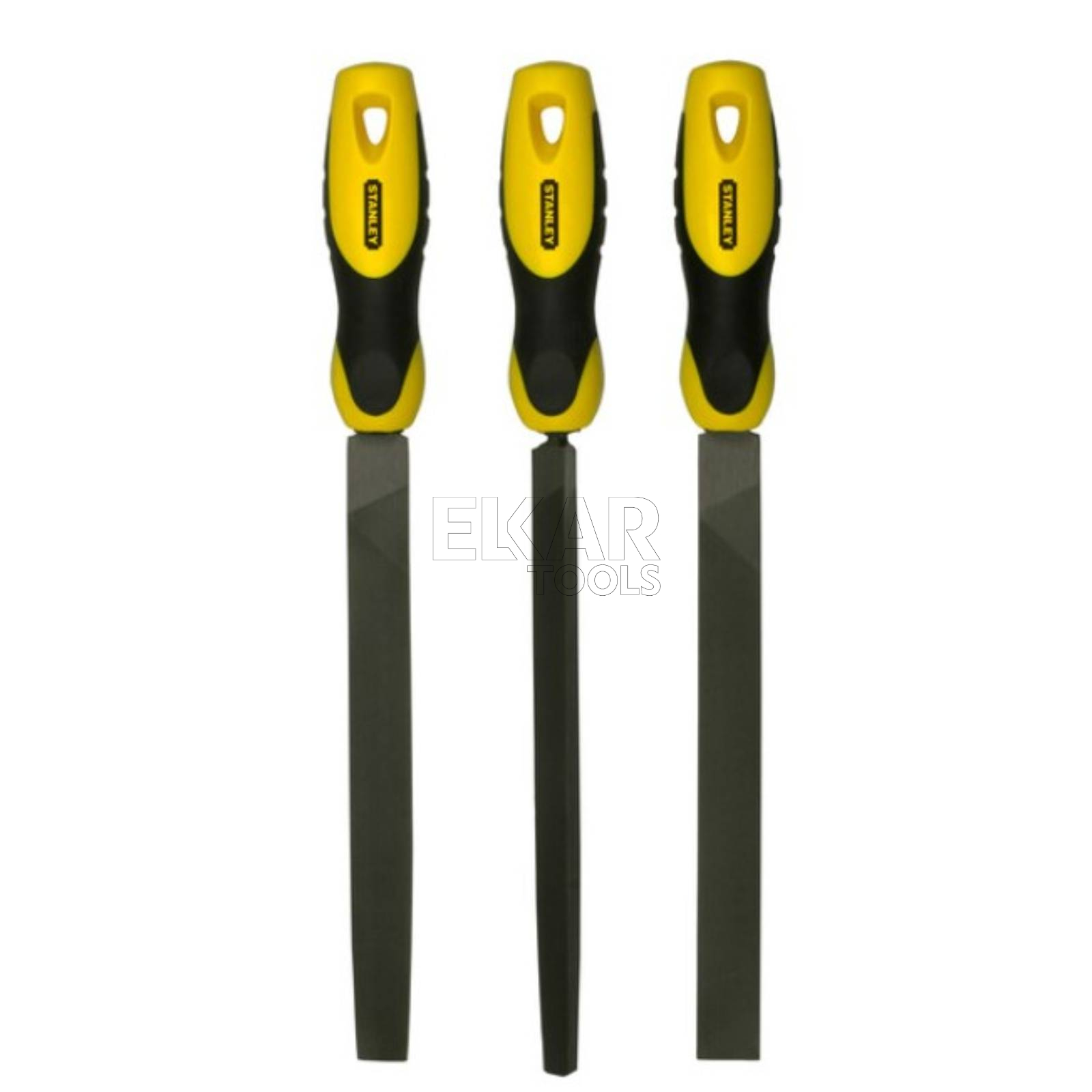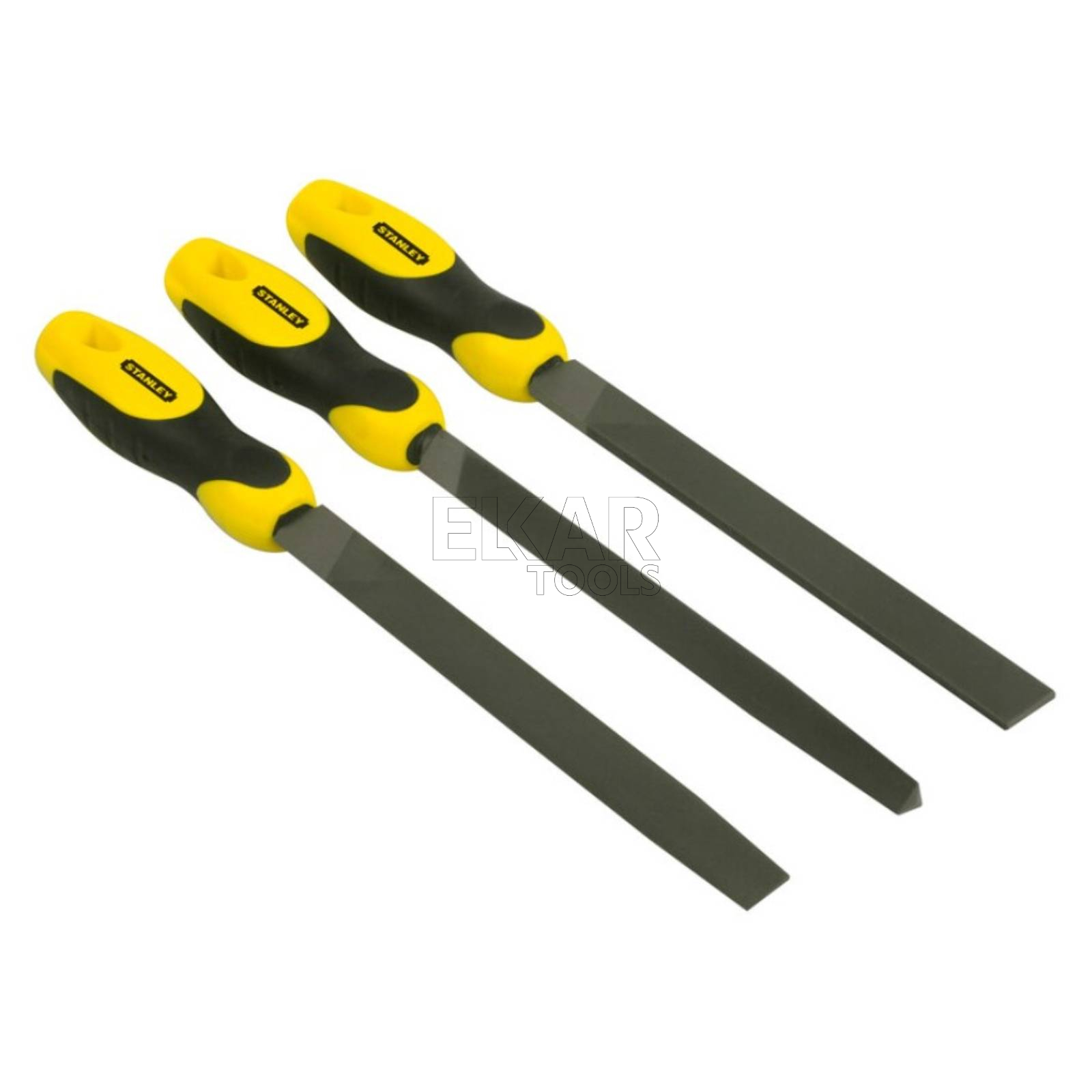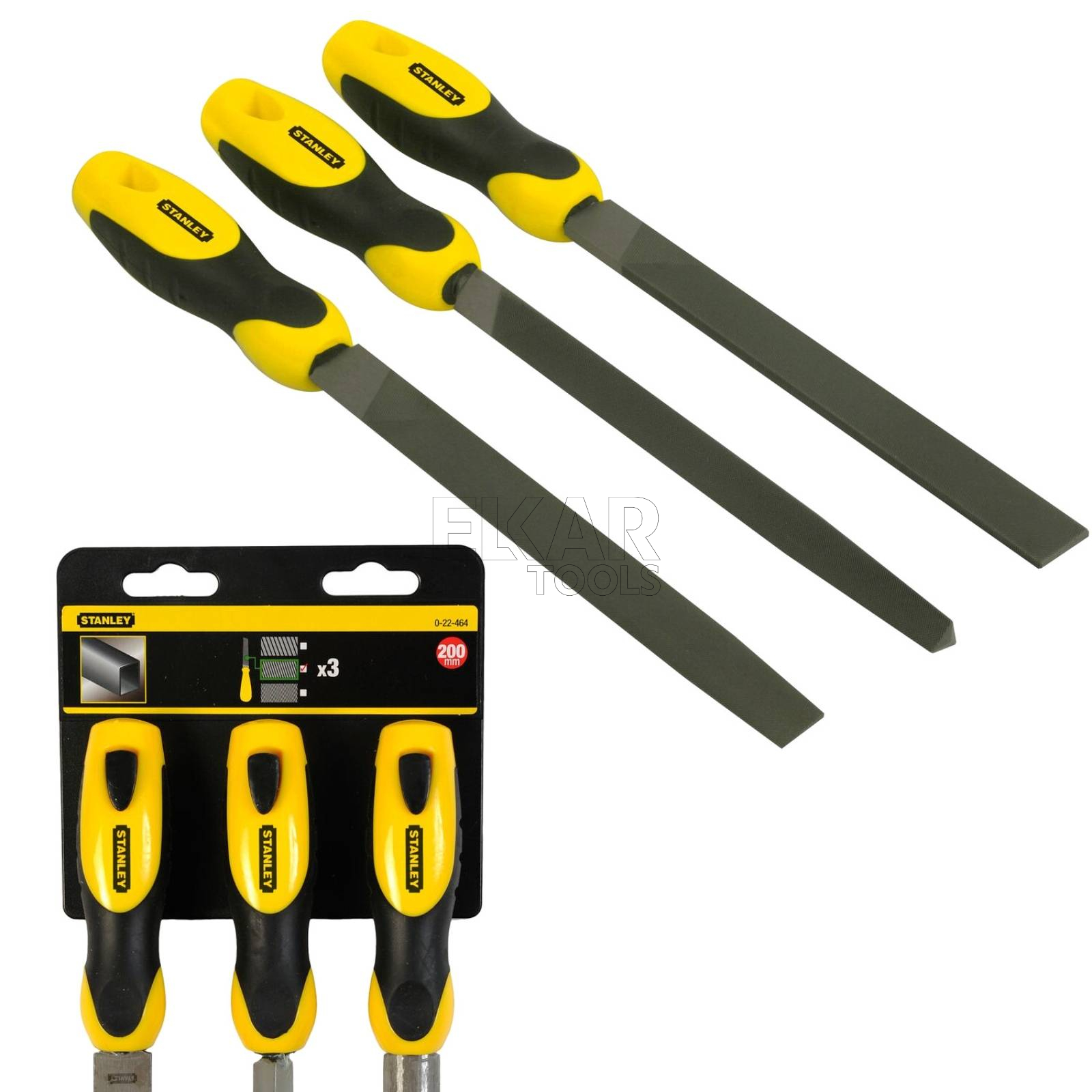 Zestaw 3 pilników do metalu 200 mm STANLEY 0-22-464 to praktyczny komplet narzędzi ręcznych, przeznaczony do precyzyjnej obróbki metalu w warsztacie, garażu lub na budowie. W skład zestawu wchodzą trzy pilniki o różnym profilu: płaski, półokrągły i okrągły, co pozwala na wszechstronne zastosowanie – od szlifowania płaskich powierzchni po wykańczanie otworów i zaokrągleń. Każdy pilnik ma długość 200 mm i wykonany jest z wysokiej jakości stali węglowej, co gwarantuje trwałość, skuteczność ścierania oraz długą żywotność.