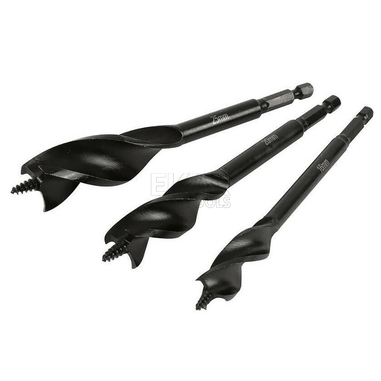 - Typ produktu: zestaw 3 wierteł spiralnych do drewna