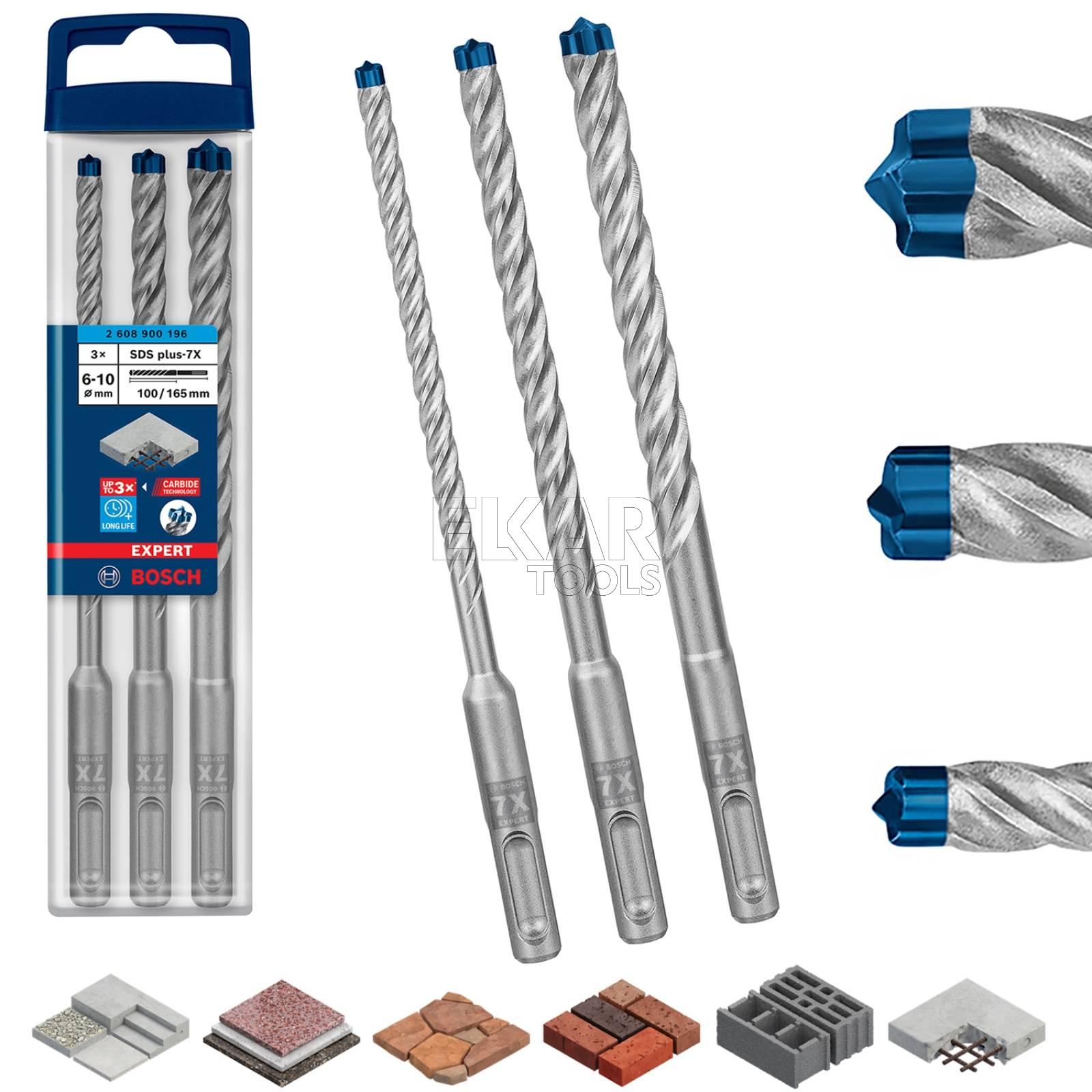 Zalety zestawu 3 wierteł SDS PLUS-7X 6/8/10mm BOSCH EXPERT 2608900196: